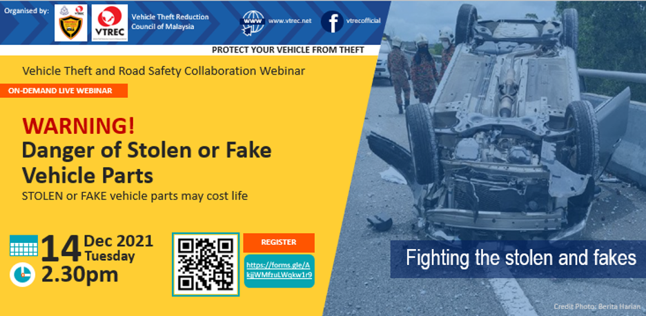 KUALA LUMPUR, 1 December 2021: The Vehicle Theft Reduction Council of Malaysia (VTREC) in collaboration with its stakeholders are embarking on a webinar focusing on the danger of using stolen or fake vehicle spare parts entitled “ Awas! Bahaya Alat Ganti Kenderaan Curi atau Palsu (Warning! Danger of Stolen or Fake Vehicle Parts)”. The webinar is part…