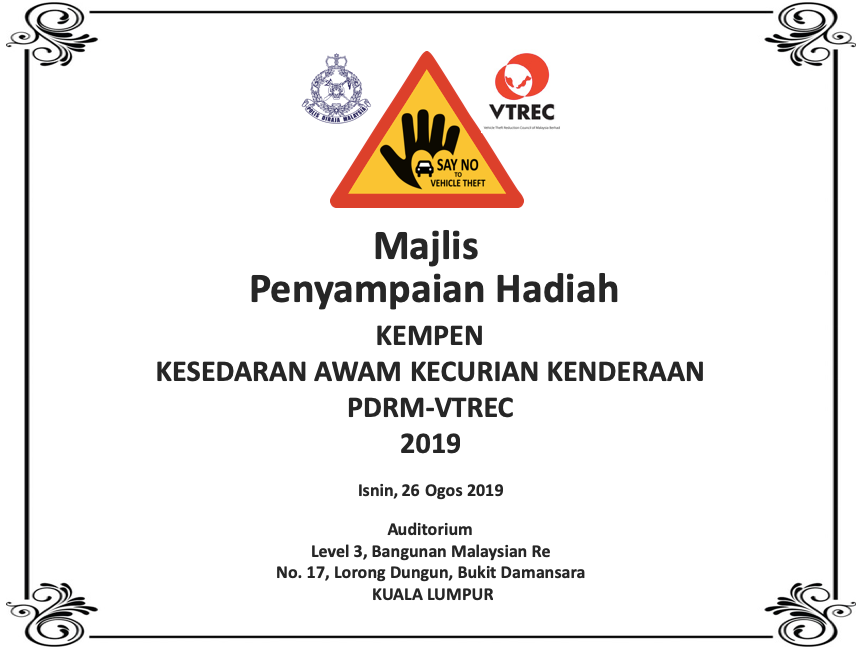 PDRM-VTREC Vehicle Theft Awareness Campaign officially launched – to raise the awareness and to reduce vehicle theft