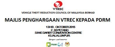 MAJLIS PENGHARGAAN VTREC KEPADA POLIS DI RAJA MALAYSIA (PDRM) Appreciation Event from VTREC to Royal Police of Malaysia (RPM) Vehicle Theft Reduction Council of Malaysia (VTREC) recently hosted an appreciation event for PDRM at Sime Darby Convention Centre, Kuala Lumpur on 13th October 2015. The Inspector General of Police, YDH…