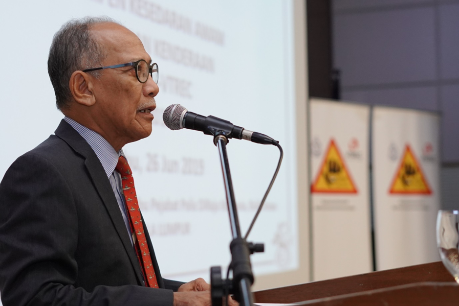 Encik Mohd Yusof Idris, Senior Advisor VTREC delivered his welcome note during Majlis Soft Launch PDRM-VTREC Vehicle Theft Public Awareness Campaign 2019.