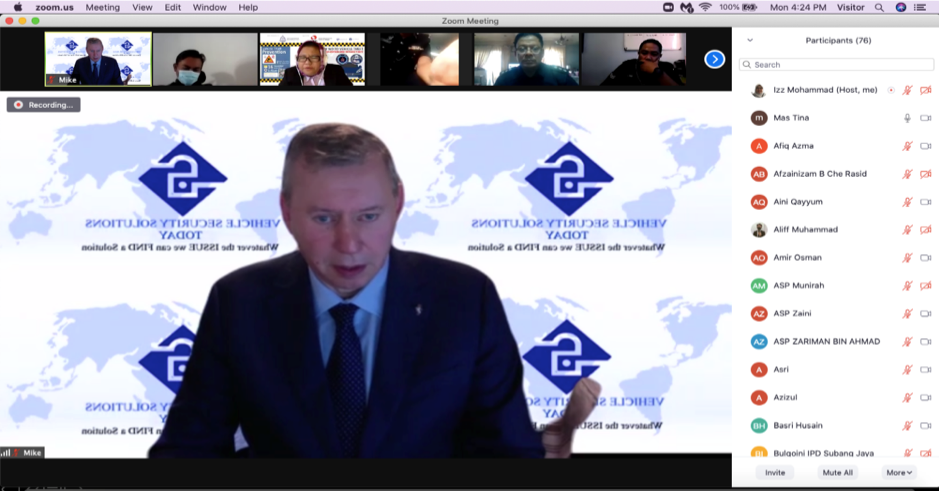 The event was conducted virtually with YDH Tuan ASP Zariman bin Ahmad from PDRM JPJKK, IPK Selangor, YBhg Lt. Kol. (PAB) Dato’ Ooi Win Juat, Head of Marketing & Advisory Department, PUSPAKOM Sdn Bhd and Mr. Mike Briggs, Managing Director, VSST Ltd, United Kingdom.