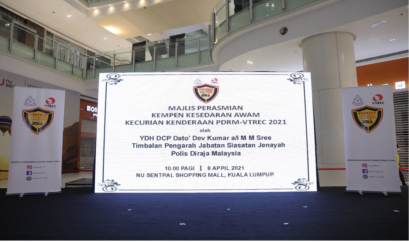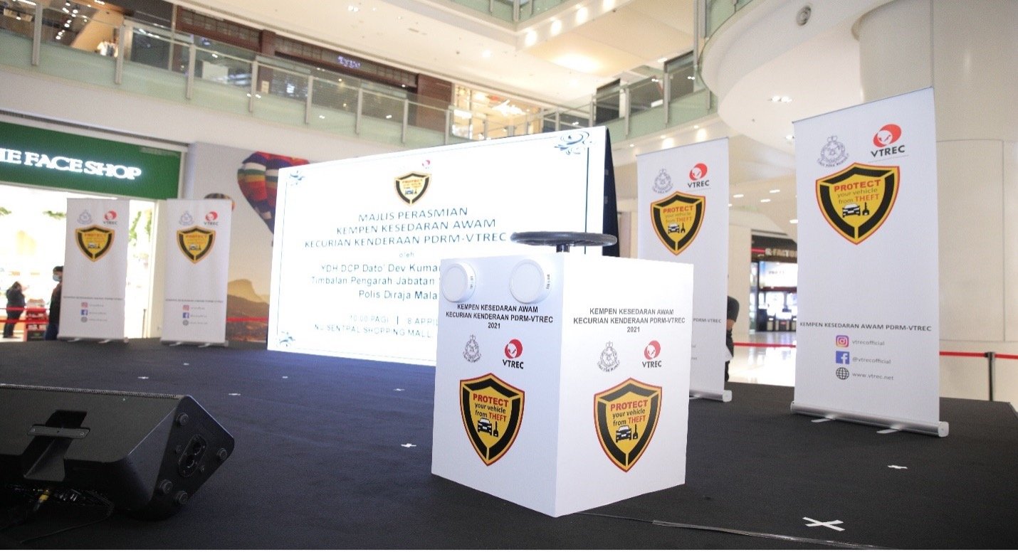 Official Launching of PDRM-VTREC Vehicle Theft Public Awareness Campaign 2021 at NU Sentral on April 8, 2021 officiated by YDH Dato’ Dev Kumar a/l M M Sree, Deputy Director of CID, Bukit Aman