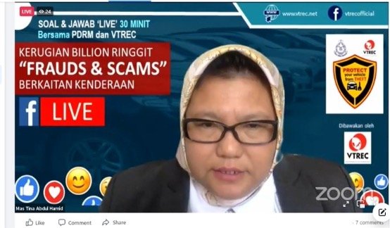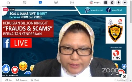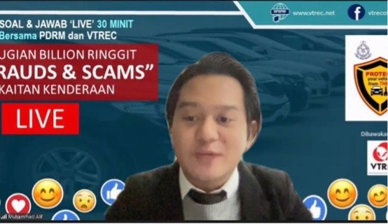 Kuala Lumpur, 11 August 2021: The Vehicle Theft Reduction Council of Malaysia (VTREC) successfully conducts a Facebook Live session entitled “Kerugian Billion Ringgit ‘Fraud & Scams’ Berkaitan Kenderaan” as a part of a public engagement and awareness initiative to inform, educate, and warn the public of the emerging trend of Auto Frauds & Scams crimes on the online platform that has come to the fore these days.