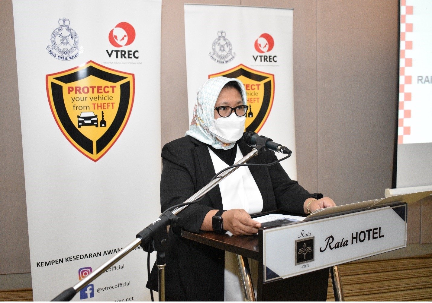 YBrs Puan Afif Aliyana Abu Fitri, Executive Officer of Vehicle Theft Reduction Council of Malaysia (VTREC) delivering her presentation on vehicle theft