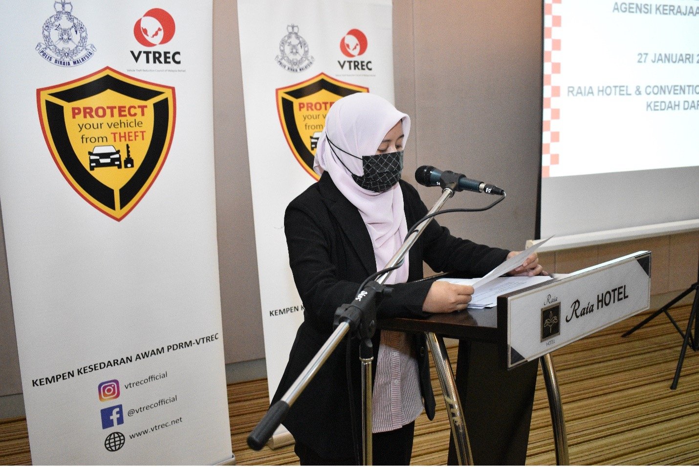 ALOR SETAR, 27 January 2022: Vehicle Reduction Council of Malaysia (VTREC) fulfil its commitments by transferring latest knowledge of vehicle theft by ensuring enforcement agencies in Kedah are in line with the latest modus operandi, technology and knowledge in relation to crime of vehicle theft with the view to enable the officers to be abreast on vehicle theft factors in their daily work as the enforcement officers.