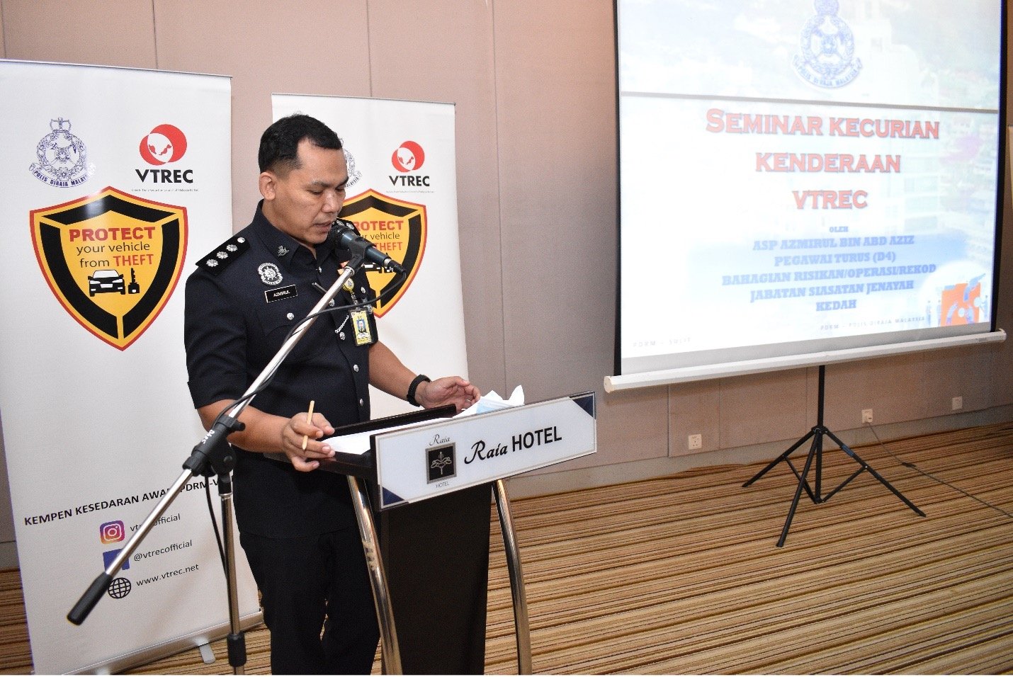 Organised in collaboration with Jabatan Pencegahan Jenayah dan Keselamatan Komuniti (JPJKK) of Polis Diraja Malaysia (PDRM), the seminar highlights multiple focus topics including latest statistics, modus operandi, advantages, weakness, syndicates, technology, inspection and so forth. The seminar was held at Raia Hotel and Convention Centre, Alor Setar, Kedah with strict Covid-19 pandemic measures and SOP, it was in conjunction with PDRM-VTREC Vehicle Theft Mini Awareness Campaign in Kedah.
