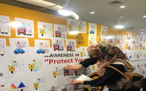 The campaign saw more than 2,500 public from Johor Bahru attending the advocacy including talk on responsibility of public to protect their vehicles. They also participated in activities such as writing messages on Doodle Wall, colouring the Doodle Wall, contests and quizzes.