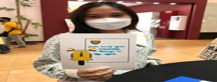 YBhg Puan Mas Tina Abdul Hamid, Co-ordinator of VTREC, assisting one of the participants at the Doodle Wall in conjunction with the Education and Awareness campaign.