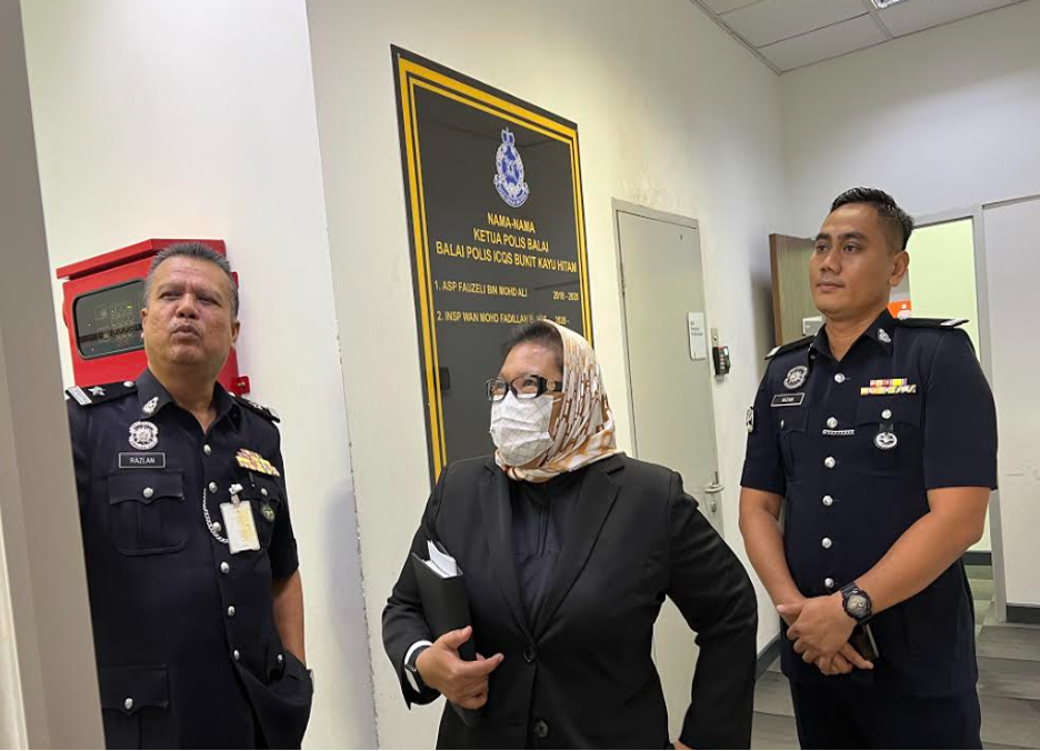 Puan Mas Tina Abdul Hamid, VTREC Co-ordinator listening to YDH Tuan SI Razlan bin Abd Razak, Timbalan Ketua Polis Balai ICQS briefing during the visit.