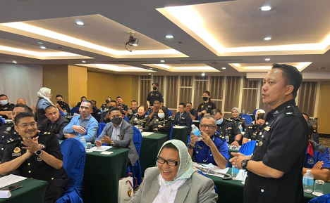 YDH Tuan DSP Mohd Syafiq Jinuin Abdullah, Jabatan Siasatan Jenayah Komersil, Polis Diraja Malaysia Bukit Aman delivering his sharing on Cyber Crime in relation to Vehicle Theft, Kes Penipuan Pembelian Kenderaan Atas Talian