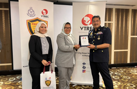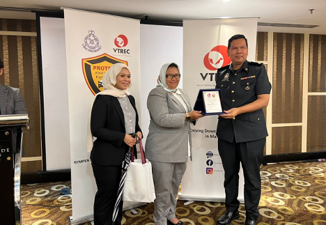 The seminar received positive responses from attended enforcement officers with various sharing and questions being raised to enlighten understanding of issues. The discussion was conducted in a healthy manner and fruitful. YBhg Puan Mas Tina Abdul Hamid, Co-ordinator of VTREC presented the memento as token of appreciation to all speakers for their dedicated and co-operation throughout the seminar.