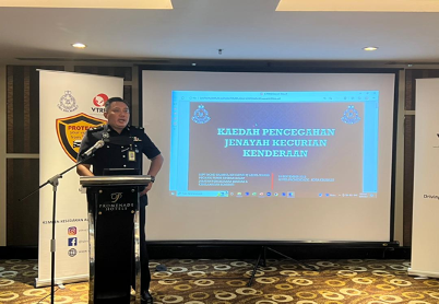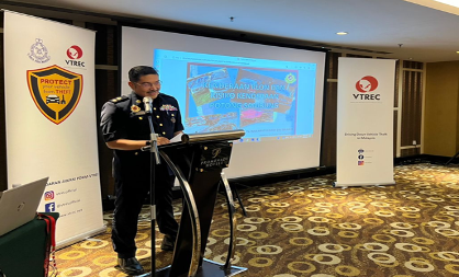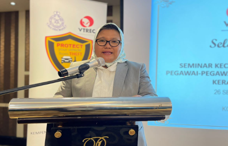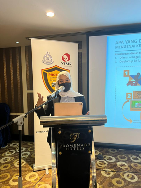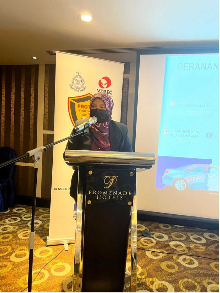 Puan Nur Alwanie Iberahim, Executive Officer of VTREC delivering about VTREC and vehicle theft statistics