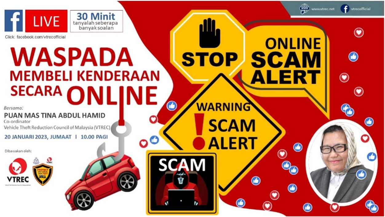 KUALA LUMPUR, 20 January 2023: With the approaching 2023 Chinese New Year, the Vehicle Theft Reduction Council of Malaysia (VTREC) accelerate its dynamism in broadening awareness about vehicle theft through a 30 minutes Facebook Live Session to advocate the public concerning online vehicle transaction apart from providing handful tips for online vehicle purchase.