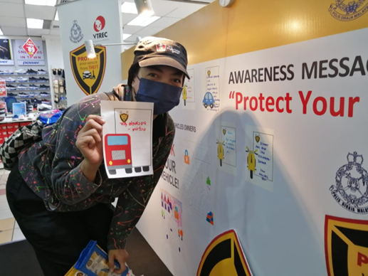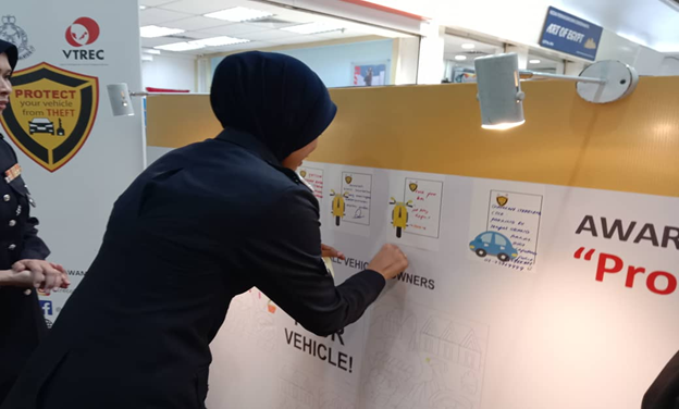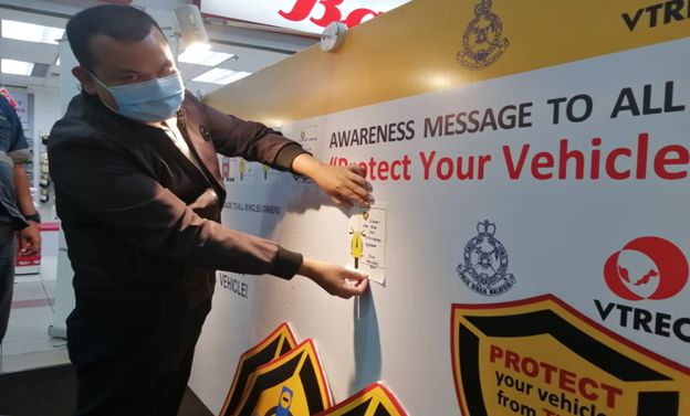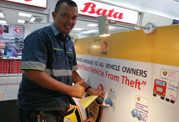 The mini campaign aims to increase awareness, to educate regarding prevention of vehicle theft among the public. This is part of VTREC commitment toward reducing vehicle theft in the country. More than 1,200 brochures have been distributed to the public and social media platform were also being utilised to prompt the public. The vehicle theft prevention mini campaign made learning and awareness fun yet scientific through: