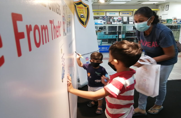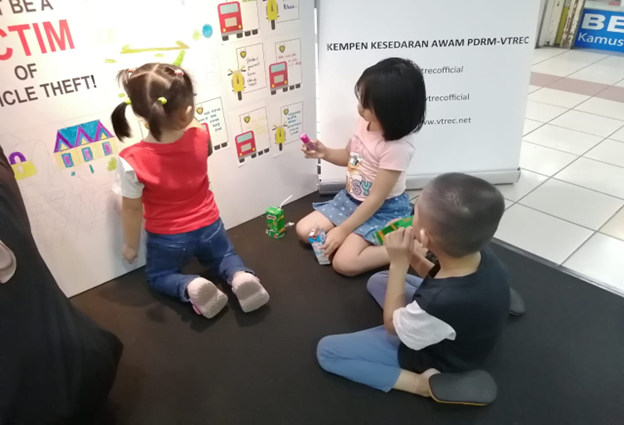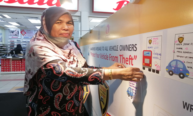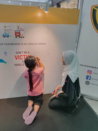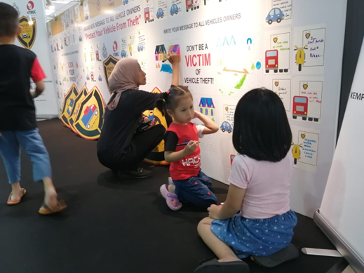 - Learning Became Fun: To ensure that the public both young and old could learn more about prevention of vehicle theft, VTREC also conducted fun educational activities like writing prevent vehicle theft messages on the engagement wall, doodle colouring, steering lock game, wheel of fortune. Winners will redeem their prizes instantly.