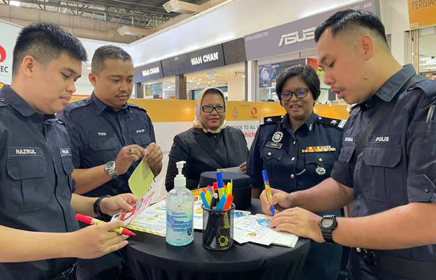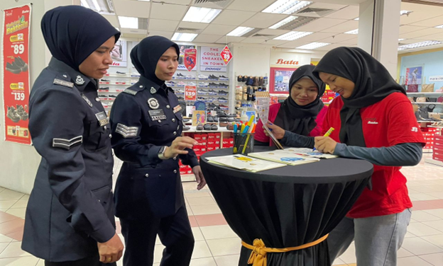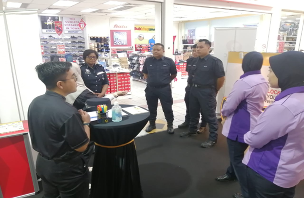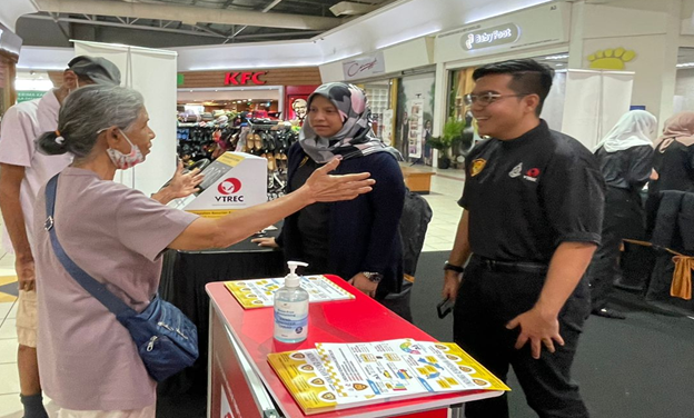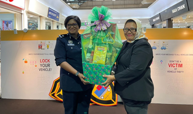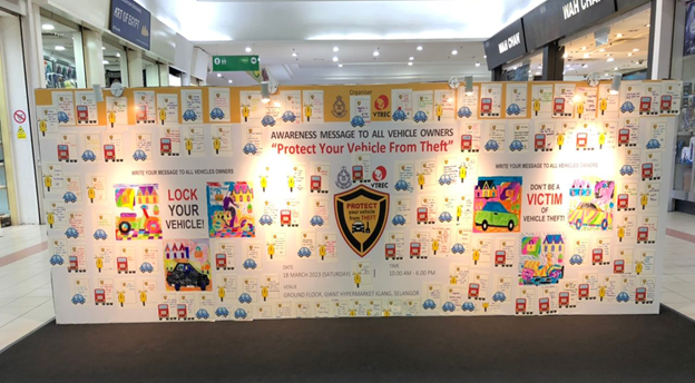 KELANG, 18 March 2023: Vehicle Theft Reduction Council of Malaysia (VTREC) continues its vehicle theft prevention mini campaign with the co-operation of Bahagian Pencegahan Jenayah dan Keselamatan Komuniti (BPJKK), Polis Diraja Malaysia, Daerah Kelang Selatan at Giant Hypermarket Kelang in a bid to increase awareness amongst motorist and public.
