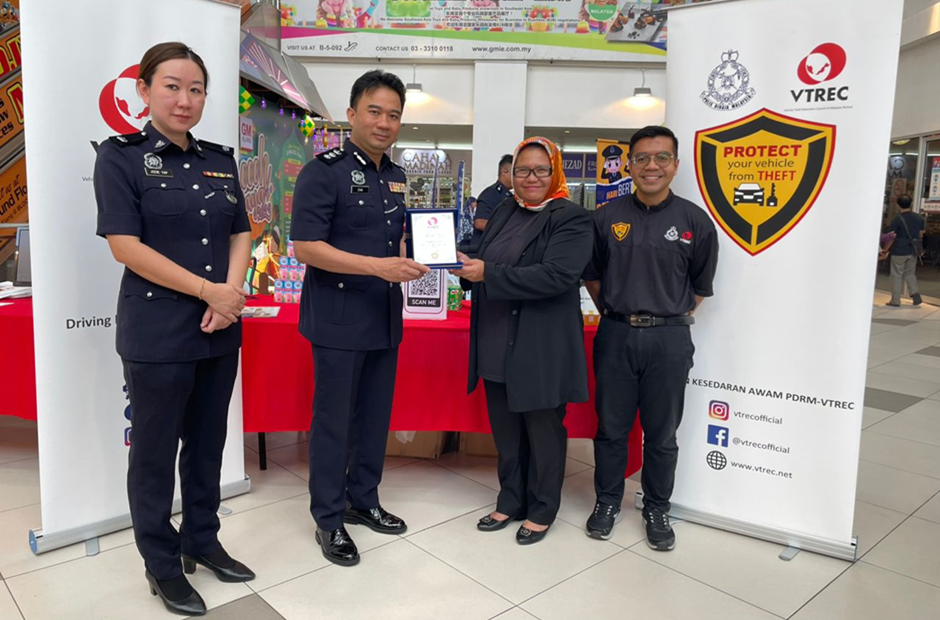 VTREC was invited by IPD Klang Selatan to join forces to raise awareness on vehicle theft in conjunction with the IPD’s Hari Bertemu Pelanggan Peringkat IPD Klang Selatan with theme “Rioooh Raya 2023” at GM Klang Whole City, Klang, Selangor. VTREC’s theme “Protect Your Vehicle from Theft” emphasises the need to protect vehicle against theft as a prerequisite for ensuring vehicle owner wellbeing and to reduce record of crime of vehicle theft nationwide. As an organisation that spearheaded the advocacy to spread the awareness among society in combating vehicle theft, VTREC joined hands with IPD Klang Selatan. The event was officiated by YDH Tuan ACP Cha Hoong Fong,OCPD of Klang Selatan.