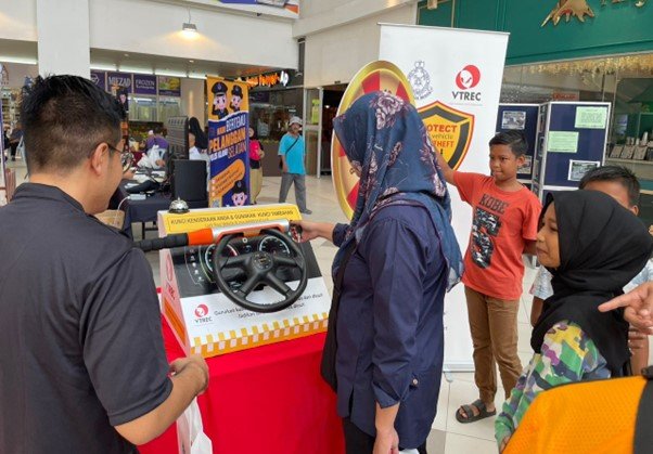 KLANG, 15 April 2023: Vehicle Theft Reduction Council of Malaysia (VTREC) continues its vehicle theft prevention awareness in collaboration with Bahagian Pencegahan Jenayah dan Keselamatan Komuniti (BPJKK), Polis Diraja Malaysia, Ibu Pejabat Polis Daerah (IPD) Klang Selatan at GM Klang Whole City in a bid to increase awareness amongst public especially in the upcoming of Hari Raya Aidilfitri 2023.