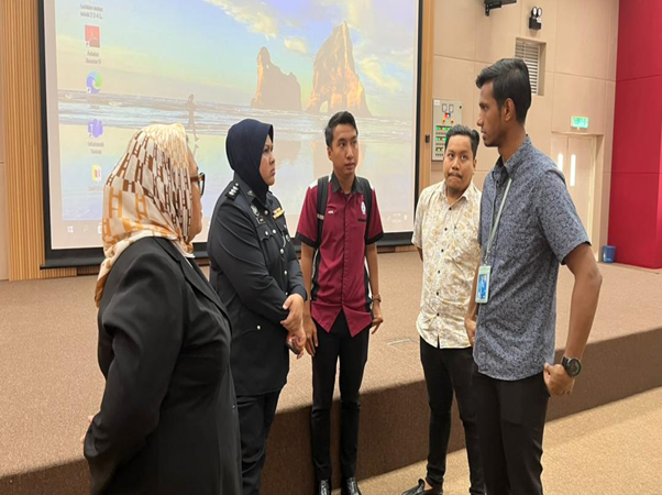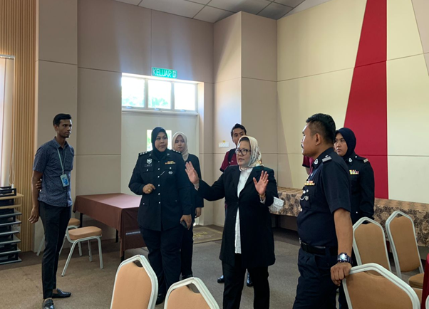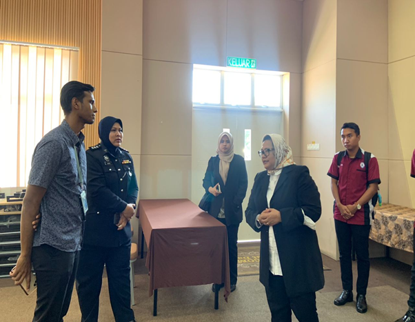 Left: Encik Samuel Nyanggau ak Jabu (Kor SUKSIS), Encik Muhammad Aidil bin Fadzli (Kor SUKSIS), Encik Kpl. Nordin bin Aripin (PDRM), Encik Nor Azmi bin Ali (HEPA UTeM), Puan Mas Tina binti Abdul Hamid (VTREC), YDH Puan ASP Juliya binti Yusof (PDRM), Cik Sjn Noaramiza binti Long (PDRM), Cik Kpl Zarinah binti Kamaludin (PDRM), Puan Siti Aqilah binti Razali (VTREC), Cik Farah Nabilah binti Mustafa Kamal (Kor SUKSIS) and Cik Nur Saffa Aliah binti Ahmad Yusri (Kor SUKSIS).