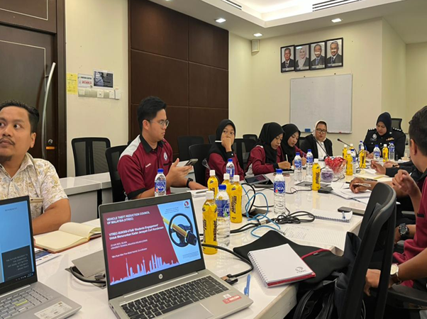 MELAKA, 22 June 2022: The Co-ordinator of Vehicle Theft Reduction Council of Malaysia (VTREC), YBrs Puan Mas Tina Abdul Hamid attended a meeting with Polis Diraja Malaysia (PDRM), PPS Kor Sukarelawan Polis Siswa Siswi (SUKSIS) UTeM and Hal Ehwal Pelajar (HEPA) Universiti Teknikal Malaysia Melaka (UTeM) to discuss plan on prevention and intervention not limited to prevention vehicle theft education, knowledge sharing and engagement with the pupil of UTeM.