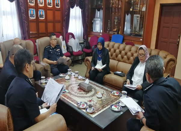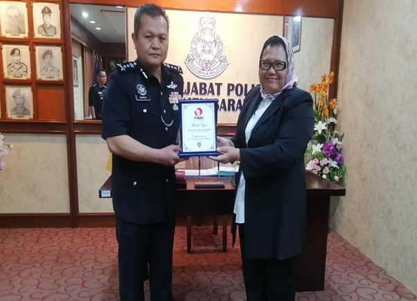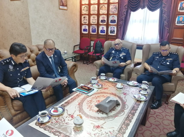 The Co-ordinator of VTREC, YBrs Puan Mas Tina Abdul Hamid (3rd from left) calls on The Deputy Police Commissioner of Sarawak, YDH DCP Mancha Anak Ata (centre) at Sarawak Contingent Police Headquarter, here today.