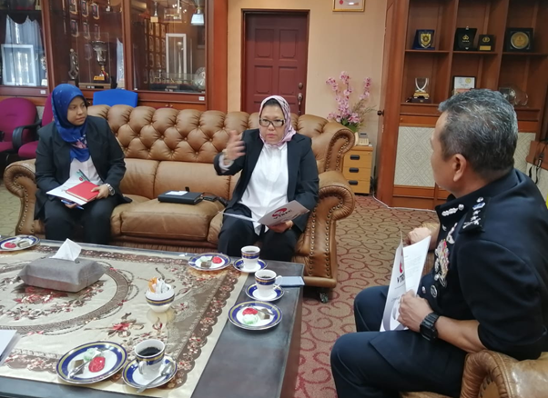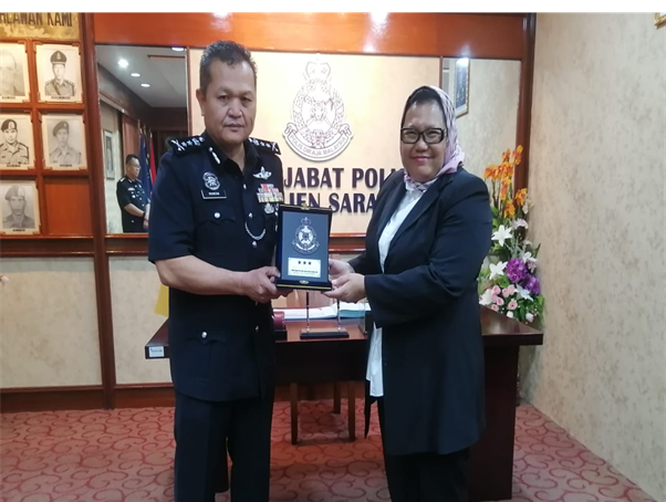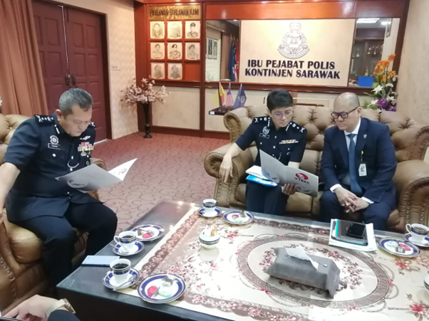 KUCHING, 25 July 2023: The Deputy Police Commissioner of Sarawak, YDH DCP Mancha Anak Ata, today received a courtesy call from Vehicle Theft Reduction Council of Malaysia Co-ordinator, YBrs Puan Mas Tina Abdul Hamid to boost bilateral co-operation.
