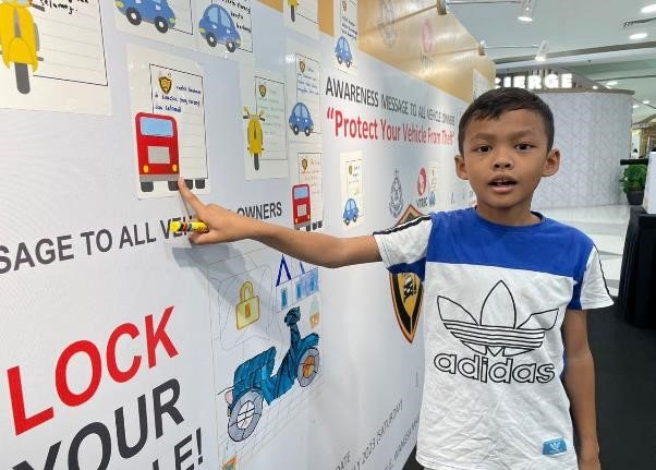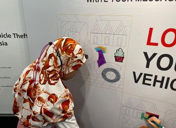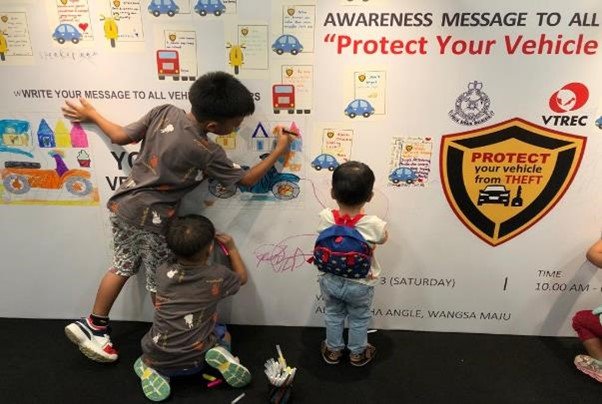 The activities at the mini campaign included VTREC Pledge Wall to showcase public commitment to protect their vehicle against theft, the public could also try and learn to lock the steering wheel swiftly which only took less than 7 seconds, answering educational questions on protecting vehicle from theft, vehicle theft wheel of fortune, doodle wall for those appreciate creativities and children colouring contest.