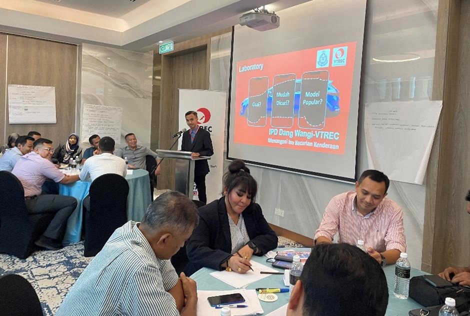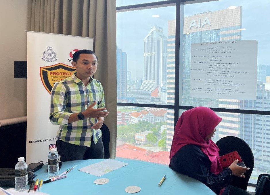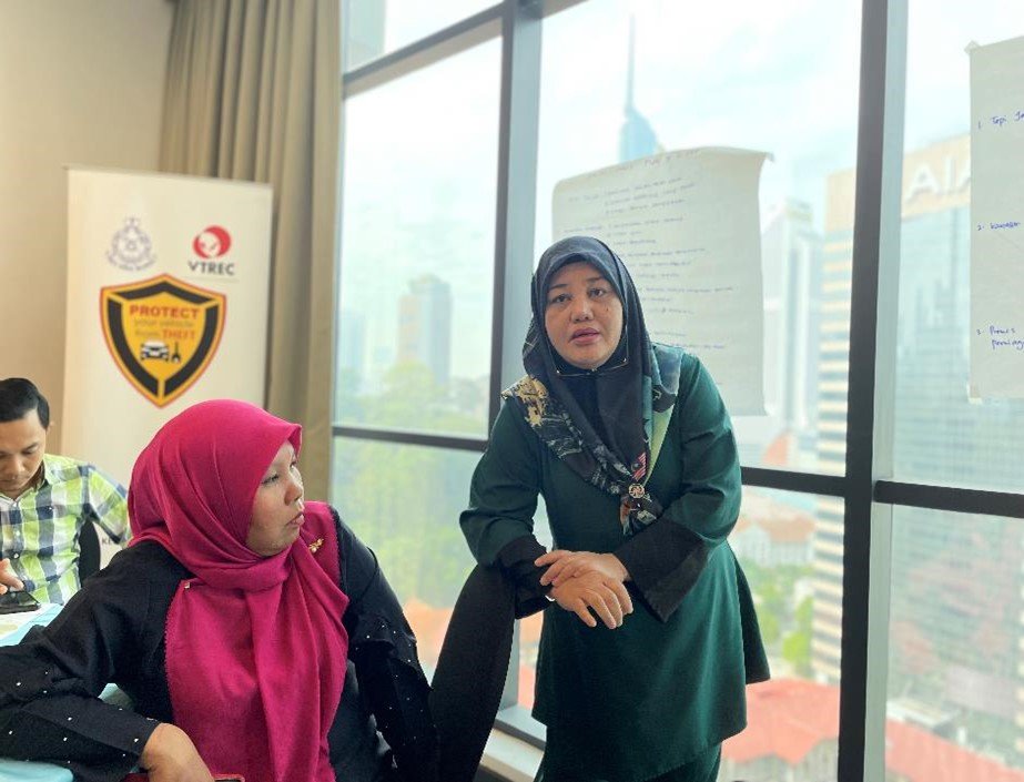 YBrs Puan Mas Tina Abdul Hamid, Co-ordinator of Vehicle Theft Reduction Council of Malaysia sharing the perspective of vehicle theft and receiving feedback from the participants at the Lab IPD Dang Wangi – VTREC
