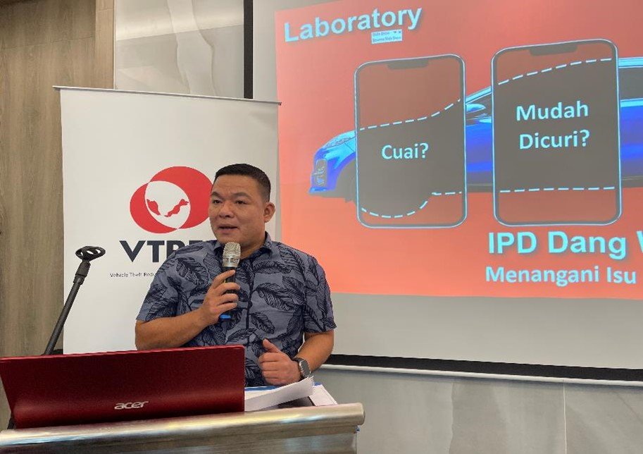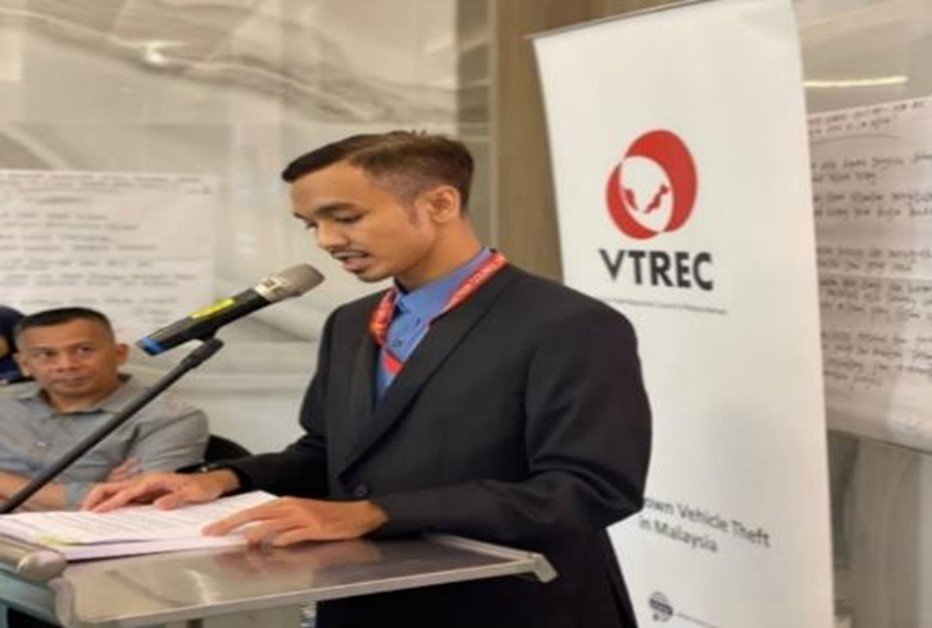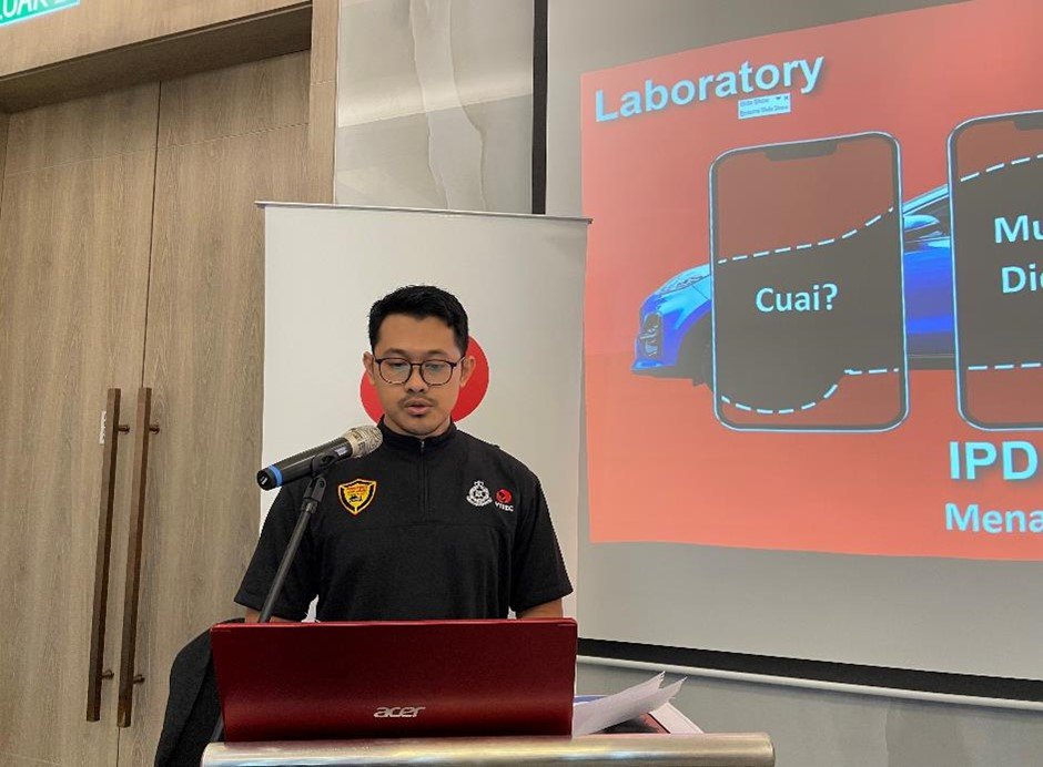Encik Zulhaziq Zulkifli, Executice Officer of Vehicle Theft Reduction Council of Malaysia (VTREC) highlights the activities and findings on Day-1 at the Lab IPD Dang Wangi – VTREC