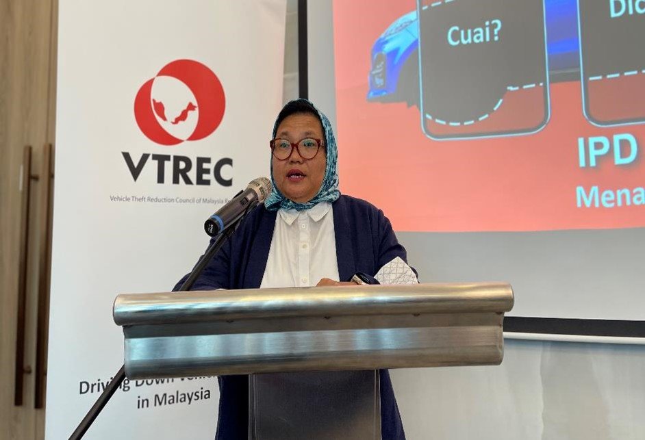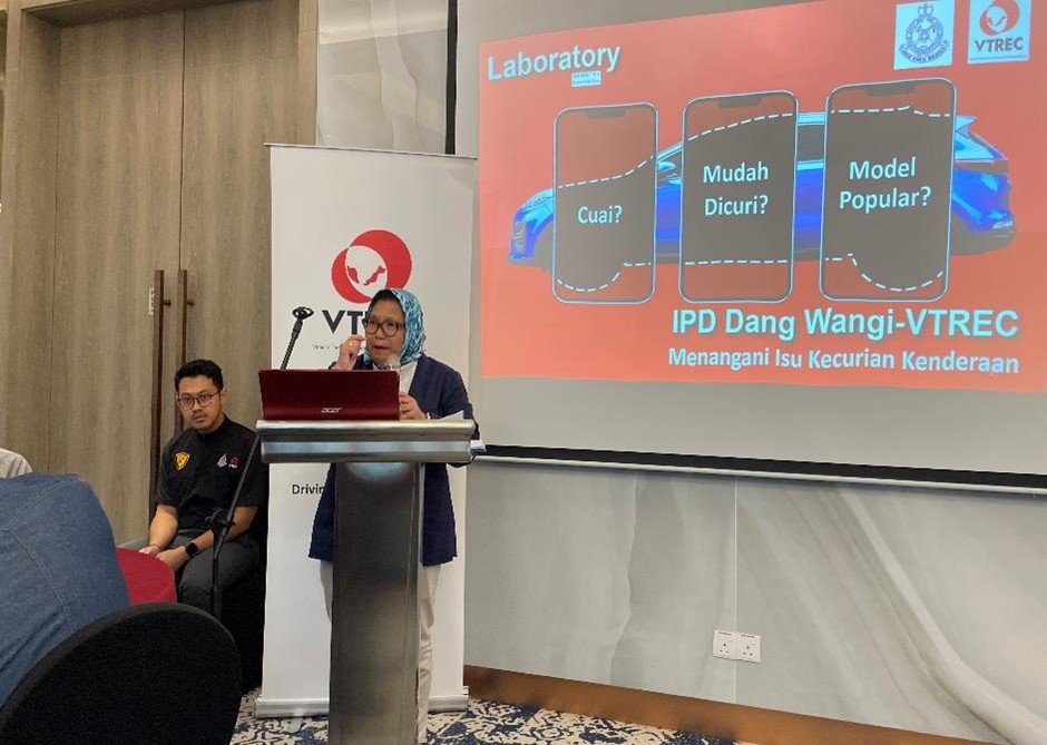 Puan Nur Alwanie Iberahim, Executive Officer of Vehicle Theft Reduction of Malaysia delivering her presentation at the Lab IPD Dang Wangi – VTREC