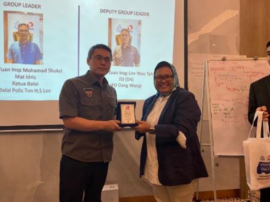 YDH Tuan Insp Mohamad Shukri Mat Idris, Ketua Polis Balai Tun H.S. Lee as the Group Leader of Group Motorcycle presenting the group findings at the Lab IPD Dang Wangi – VTREC