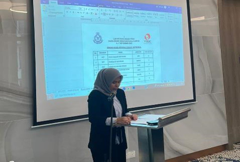 Puan Marlyana Mansur, Executive Officer of Vehicle Theft Reduction Council of Malaysia (VTREC) as the Emcee of the event welcomes the OCPD and all participants at the Lab IPD Dang Wangi – VTREC