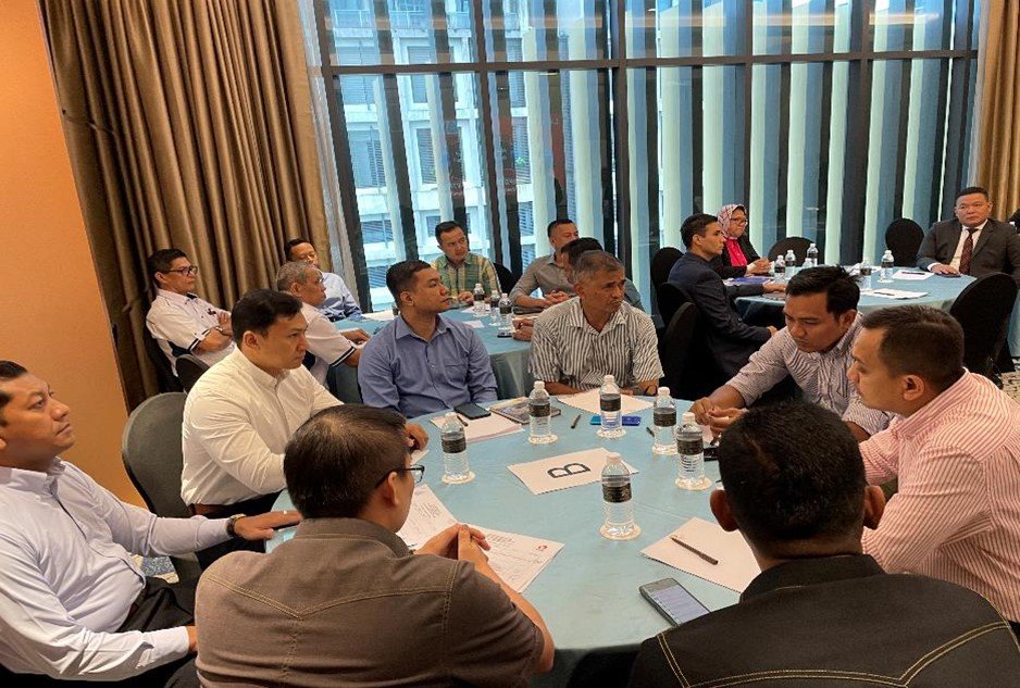 Sitting from left: Encik Zulhaziq Zulkifli, Executive of Vehicle Theft Reduction Council of Malaysia (VTREC), YDH Tuan ASP Jeffri Zainal, Senior Investigative Officer (SIO), YDH Tuan DSP Ahmad Syaari Ishak, Ketua Bahagian Siasatan Jenayah Narkotik, YDH Tuan ASP Hazrat Hussein Mion Hussain, Ketua Balai Polis Dang Wangi, YDH Tuan Supt Naazron Abdul Yusof, Timbalan Ketua Polis, Ibu Pejabat Polis Daerah Dang Wangi, YDH Tuan ACP Noor Dellhan Yahaya, Ketua Polis, Ibu Pejabat Polis Daerah Dang Wangi, YBrs Puan Mas Tina Abdul Hamid, Co-ordinator of Vehicle Theft Reduction Council of Malaysia (VTREC), YDH Puan DSP Saheela Abu Bakar, Ketua Bahagian Pencegahan Jenayah dan Keselamatan Komuniti , YDH Tuan Insp Mohamad Shukri Mat Idris, Ketua Balai Polis Tun H.S. Lee, YDH Tuan ASP Riduwan Rahim, Ketua Cawangan Mobile Petrol Vehicle (MPV), Puan Nur Alwanie Iberahim, Executive Officer of Vehicle Theft Reduction Council of Malaysia (VTREC) with a part of the participants and facilitators.