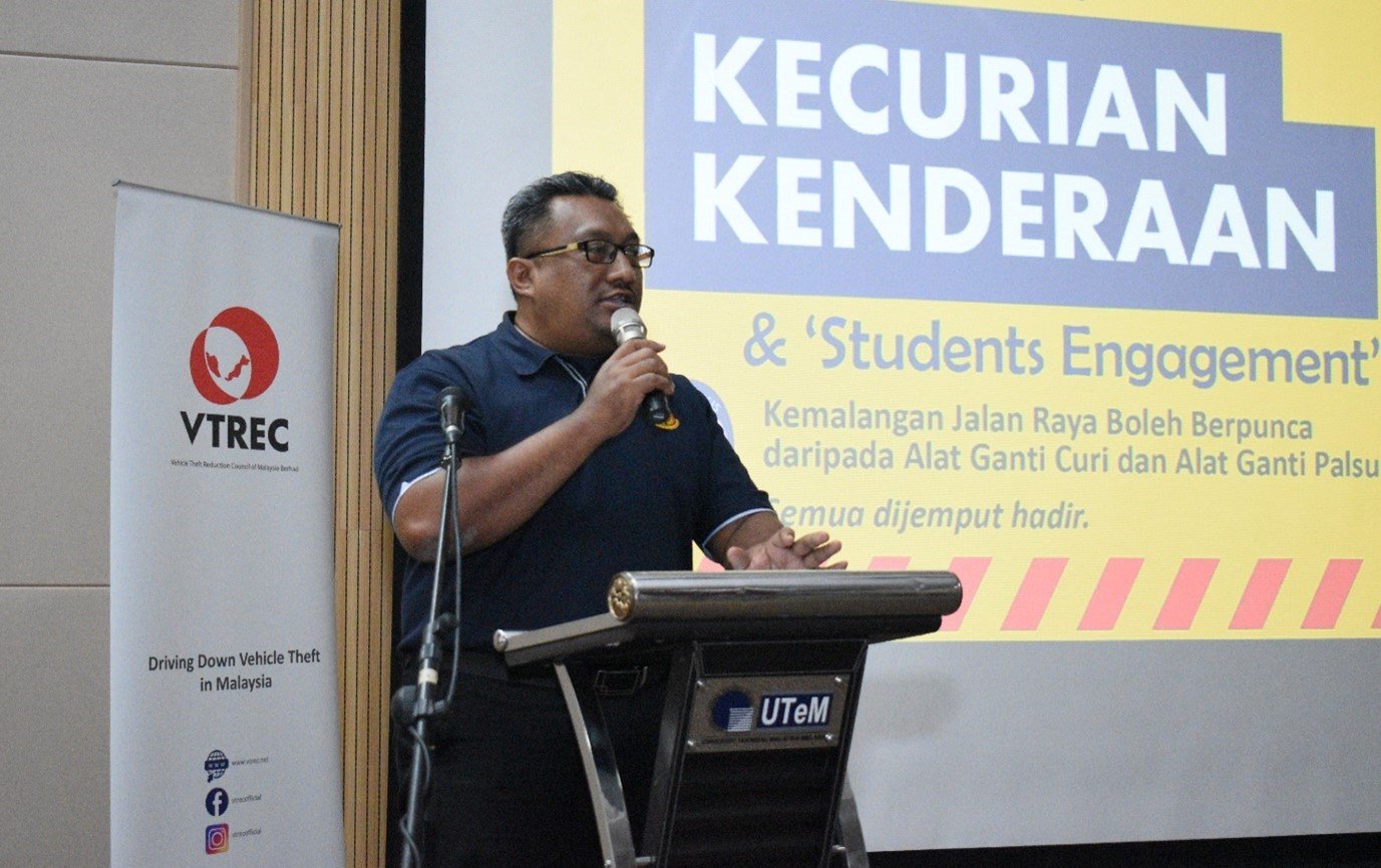 Meanwhile, Puan Mas Tina Abdul Hamid, Co-ordinator of VTREC, said establishing engagement with the students and co-operation with UTeM and SUKSIS is one of the Council’s initiatives in executing the knowledge sharing and best practice sharing in combating vehicle theft among the students in particular.