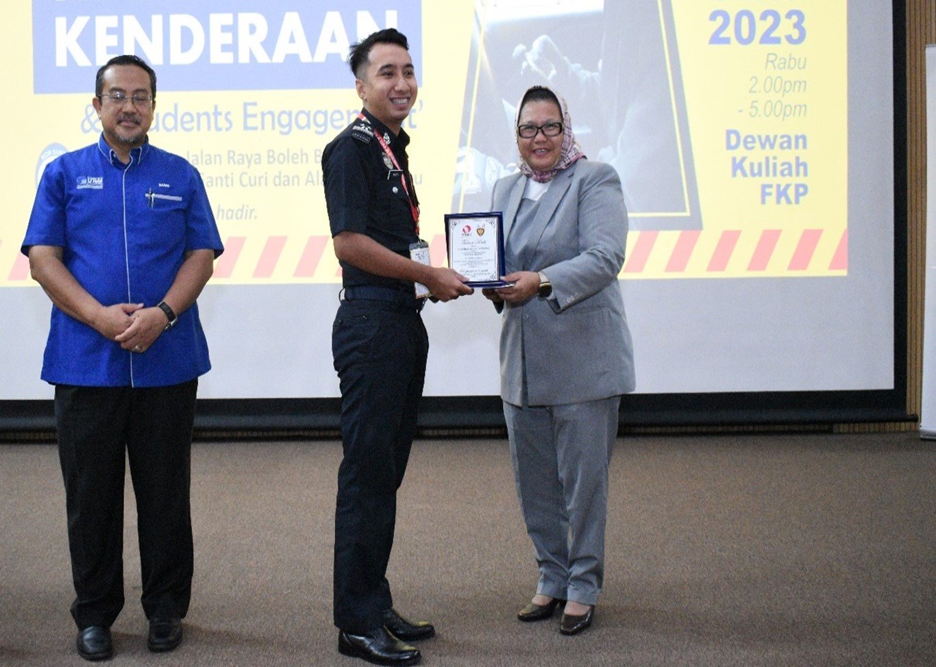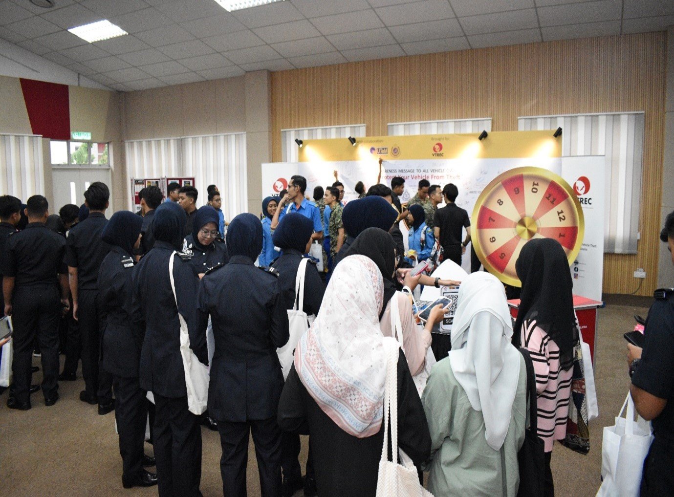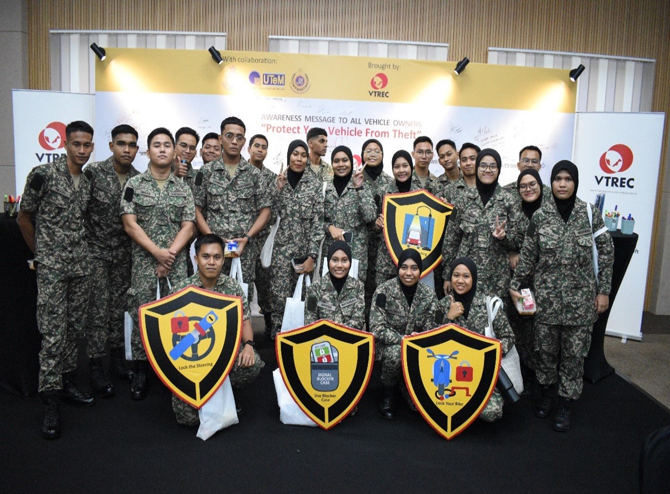 The event was officiated by YBhg Professor Madya Datuk Dr. Sabri Mohamad Sharif, Timbalan Naib Canselor Hal Ehwal Pelajar & Alumni, Universiti Teknikal Malaysia Melaka. The engagement event aimed at rising awareness of crime of vehicle theft, transfer of knowledge and the prevention of vehicles from being stolen including stolen of vehicle spare parts. More than 250 students from various Pasukan Pakaian Beruniform such as Kor Sukarelawan Siswa Siswi, Kor Siswa-Siswi Pertahanan Awam, and Pasukan Latihan Pegawai Simpanan of Universiti Teknikal Malaysia Melaka participated in the event.