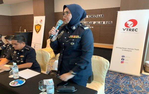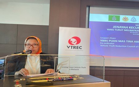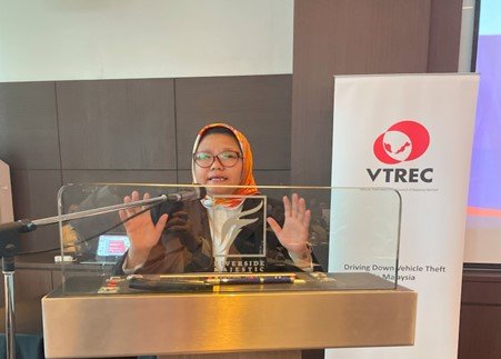 YBrs Puan Mas Tina Abdul Hamid, Co-ordinator of the Vehicle Theft Reduction Council of Malaysia (VTREC) delivered her presentation as the first speaker on “Kecurian Kenderaan Berkaitan Kemalangan Jalan Raya” at Vehicle Theft Reduction Council of Malaysia (VTREC) Seminar