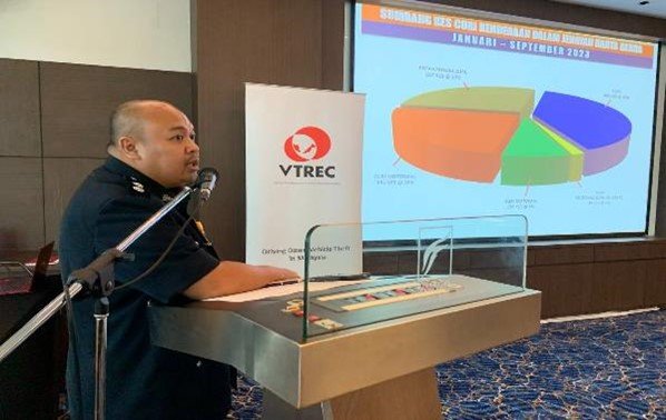 KUCHING, 30 October 2023: As a part of a continuous effort against vehicle theft, the Vehicle Theft Reduction Council of Malaysia (VTREC) holds a seminar on vehicle theft in which related traffic accidents with government enforcement agencies including Polis Diraja Malaysia (PDRM), Jabatan Pengangkutan Jalan Malaysia (JPJ) and Pasukan Gerakan Am (PGA), Unit Keselamatan Penguatkuasaan Sarawak (UKPS), and Angkatan Tentera Malaysia (ATM).