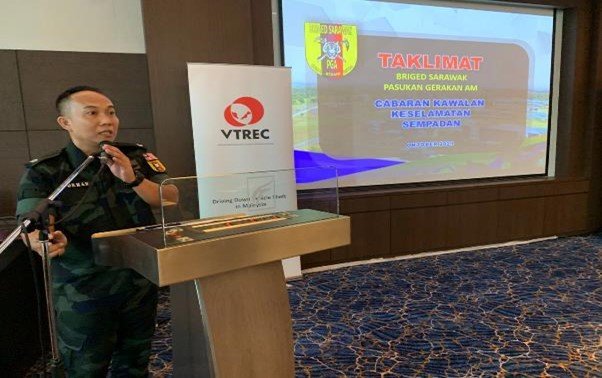YDH Tuan DSP Norman Chendan Philip Picha Rumpang, Pegawai Turus Gerakan & Risik, Briged Sarawak, Pasukan Gerakan Am, Polis Diraja Malaysia as the third speaker delivering his sharing on “Cabaran Kawalan Keselamatan Sempadan” at Vehicle Theft Reduction Council of Malaysia (VTREC) Seminar