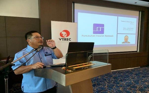 - Mr Tommy Li Chiau Tong, Advisor, Pertubuhan Insuran Sarawak with his presentation on Challenges and fate faced by users when involved in accidents related to stolen vehicles, cut and join vehicles, and clone vehicles.