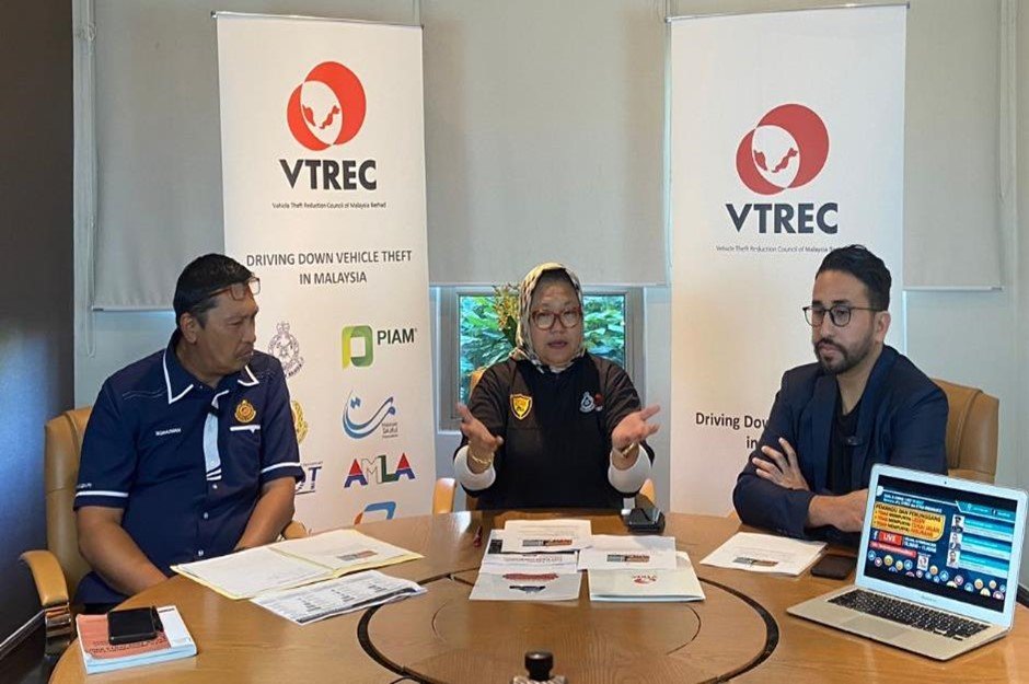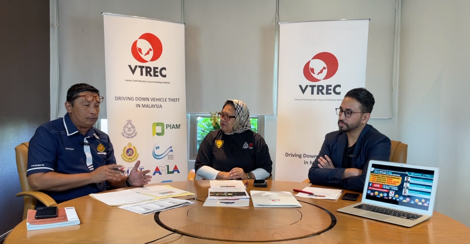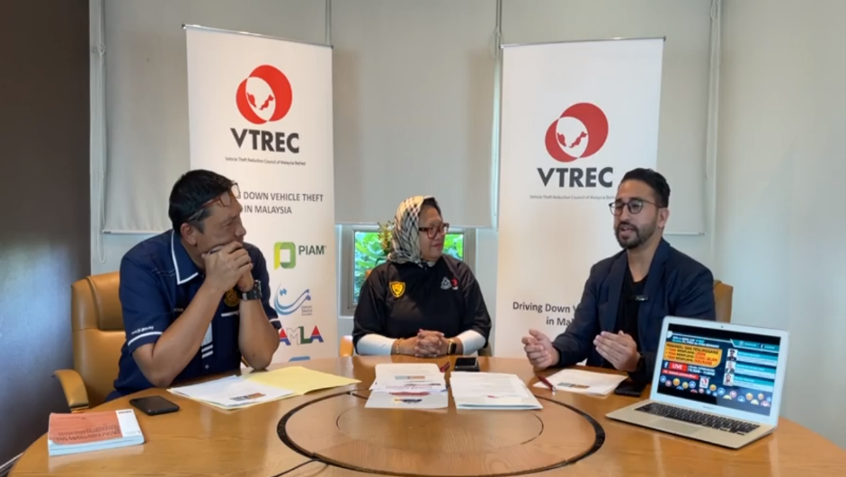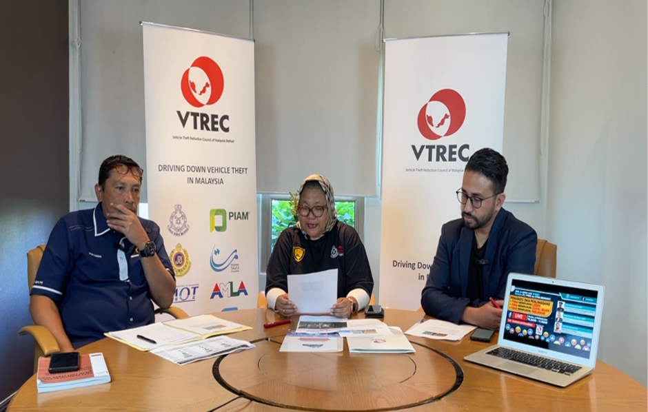 YBrs Puan Mas Tina Abdul Hamid, Co-ordinator, Vehicle Theft Reduction Council of Malaysia (VTREC) (centre) sharing her knowledge and latest info on the reverse effect whenever a vehicle being stolen and without having insurance coverage at VTREC FB Live