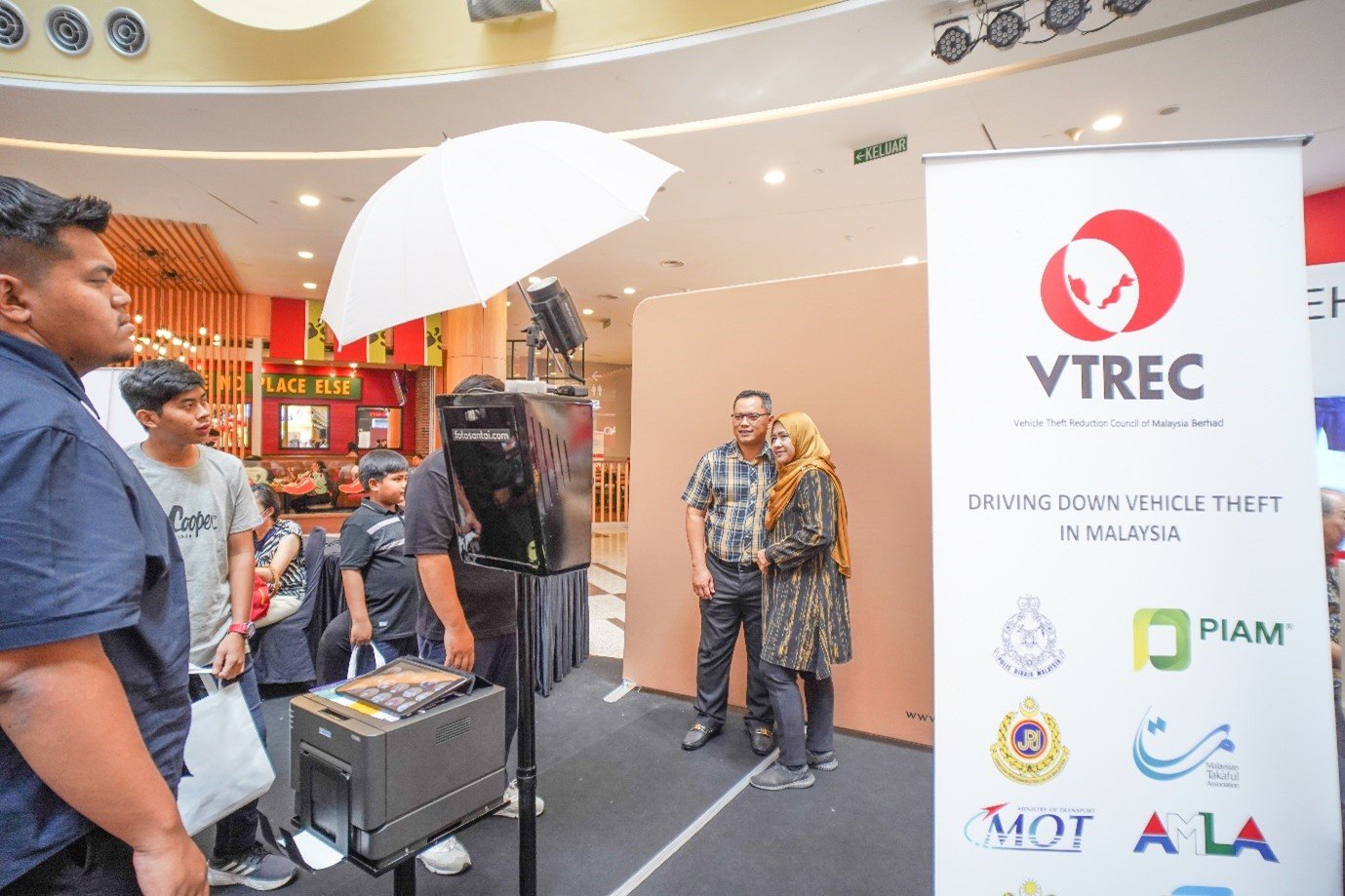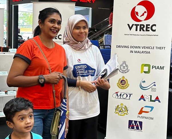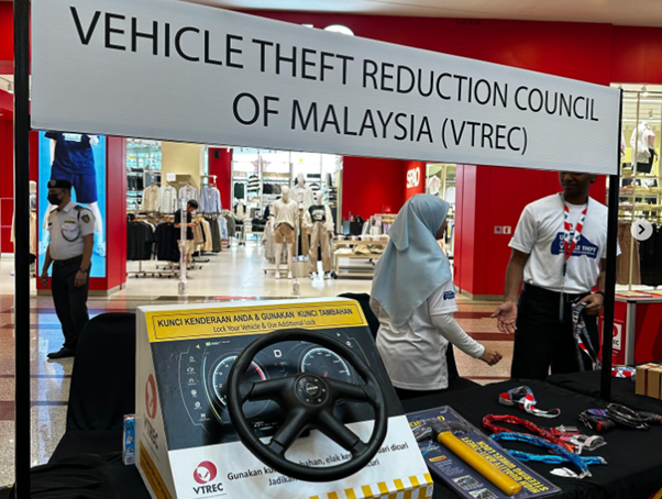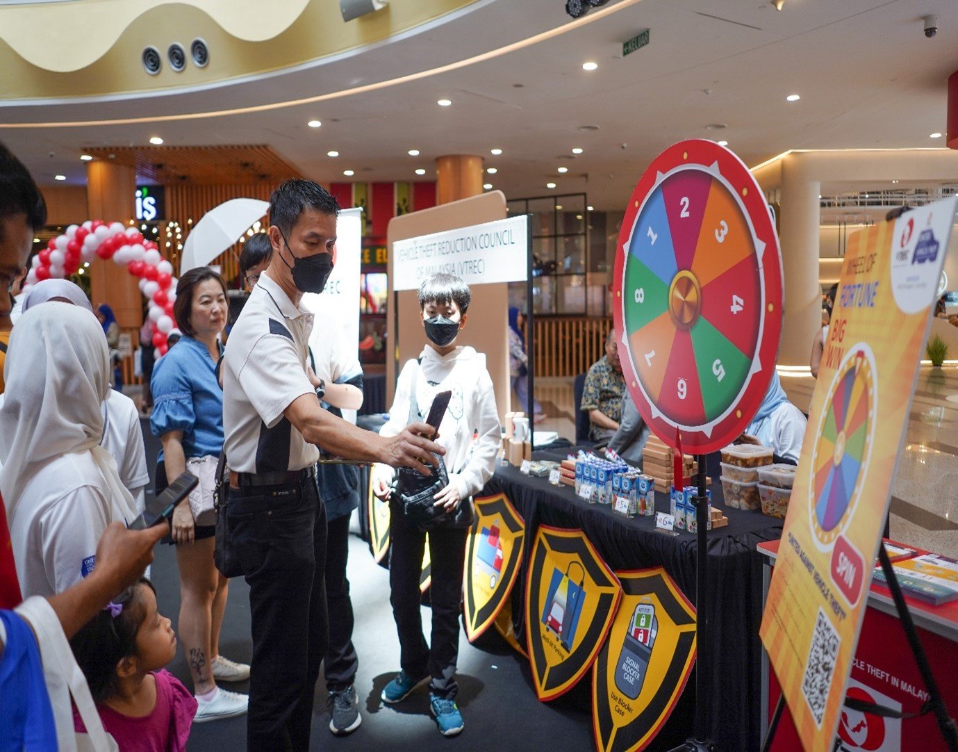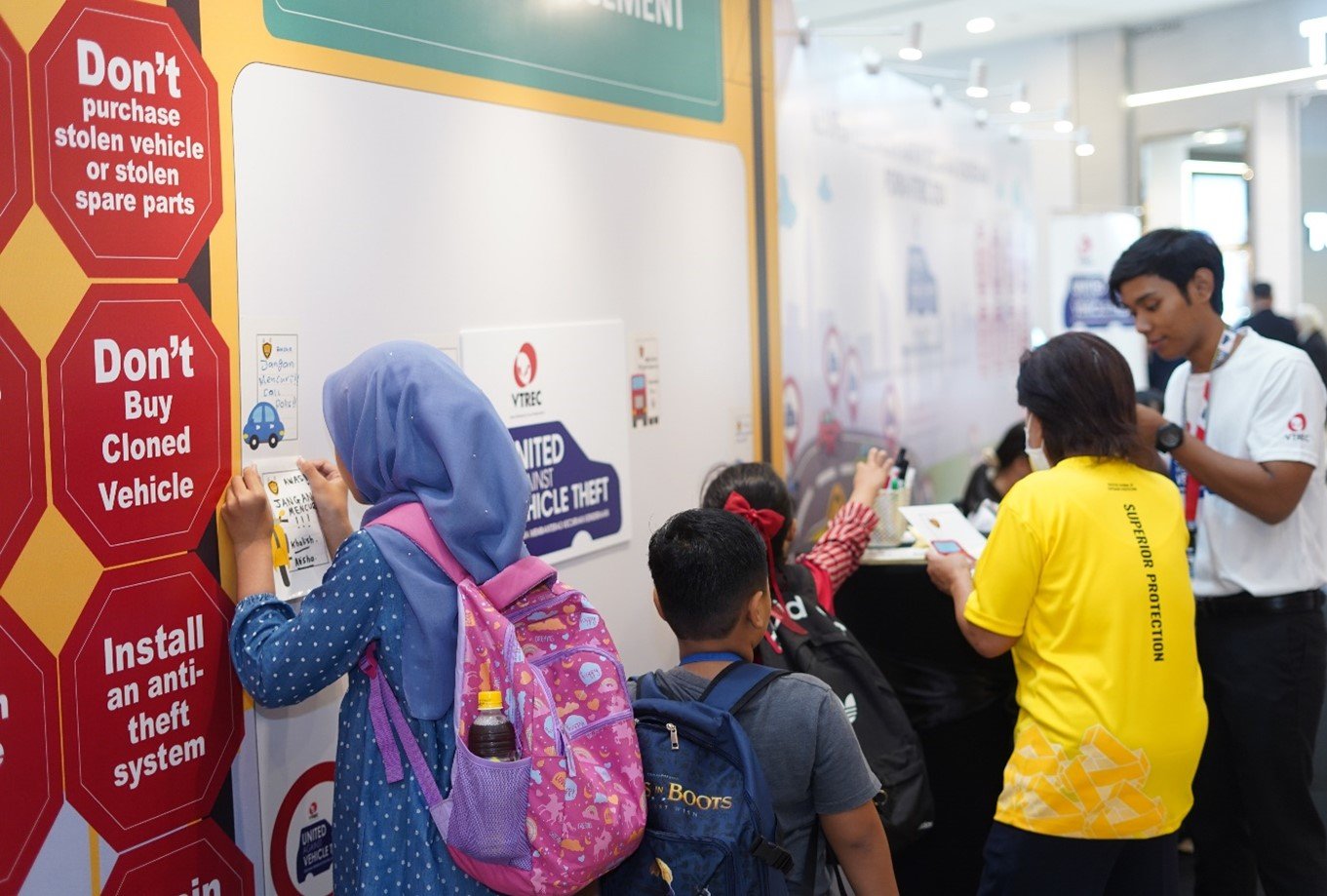 Besides VTREC Engagement and Interaction Booth, there were also Polis Diraja Malaysia (PDRM) Jabatan Siasatan Jenayah (JSJ), IPK Selangor, Bahagian Pencegahan Jenayah dan Keselamatan Komuniti (BPJKK) IPD Cheras, Jabatan Pengangkutan Jalan Malaysia (JPJ) and PUSPAKOM Sdn Bhd participated by setting up exhibition booths to raise awareness about vehicle theft. They engaged with the public visitors, explaining the roles of each agency involved in combating vehicle theft.