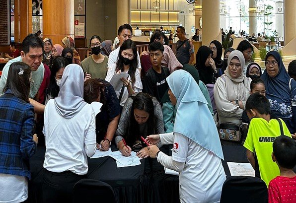 The situation at the registration counter as parents are registering their children for the Colouring Competition.