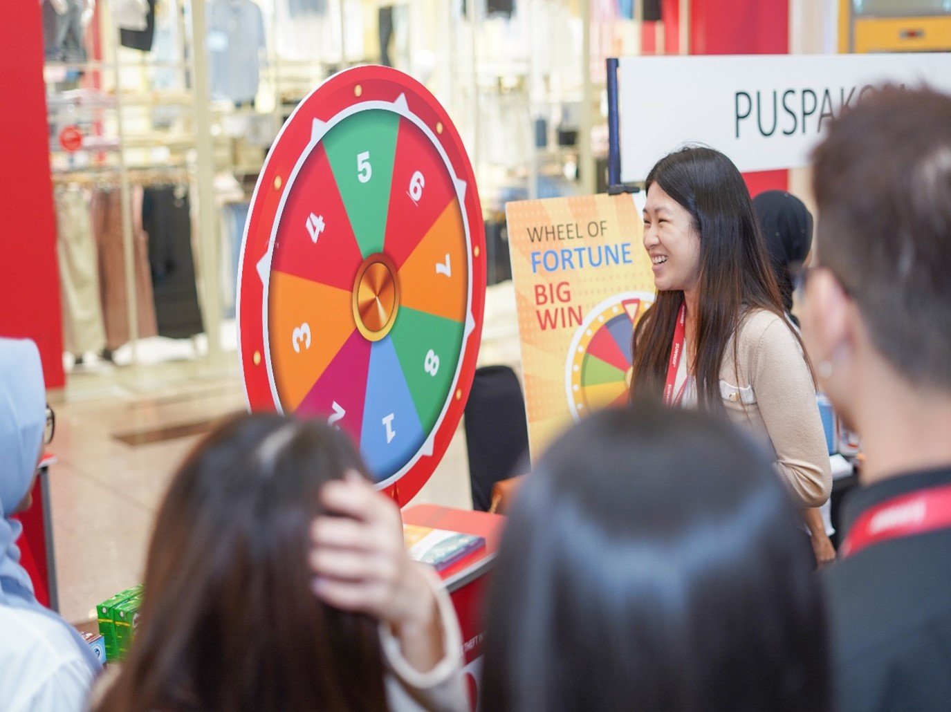 The scenario where visitors answering questions posed by YBhg Dato’ Ooi Win Juat, Head Advisor & Marketing of PUSPAKOM Sdn Bhd, he also invited participants to be on stage to participate in his demonstration.