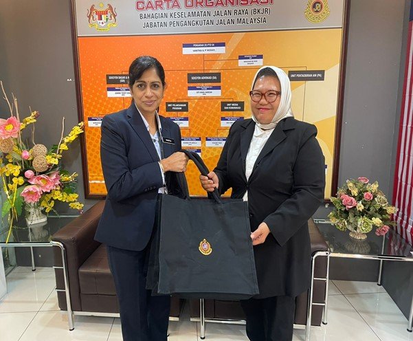 Putrajaya, 17 May 2024: YBrs Puan Vanitha a/p Mohan, Pengarah Bahagian Keselamatan Jalan Raya (BKJR), Jabatan Pengangkutan Jalan Malaysia (JPJ) received a Courtesy Call from YBrs Puan Mas Tina Abdul Hamid, Co-ordinator of Vehicle Theft Reduction Council of Malaysia (VTREC) at her office in Putrajaya.