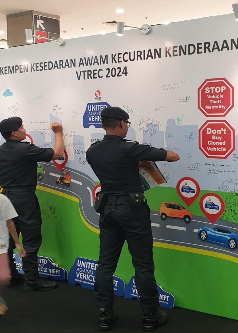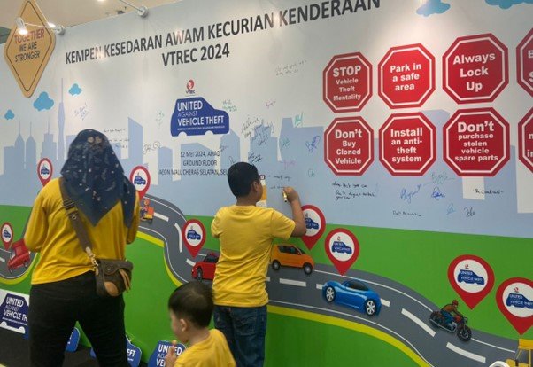 By promoting public awareness and advocating for behavioural shifts towards safeguarding vehicles, the campaign resonates with its theme, “United Against Vehicle Theft”. The mini-campaign serves as a vital platform for knowledge-sharing and inspiring action, empowering individuals, the public, communities, agencies and other stakeholders to unite against the crime of vehicle theft. The mini-campaign was hosted at AEON Cheras Selatan, Balakong, Selangor.