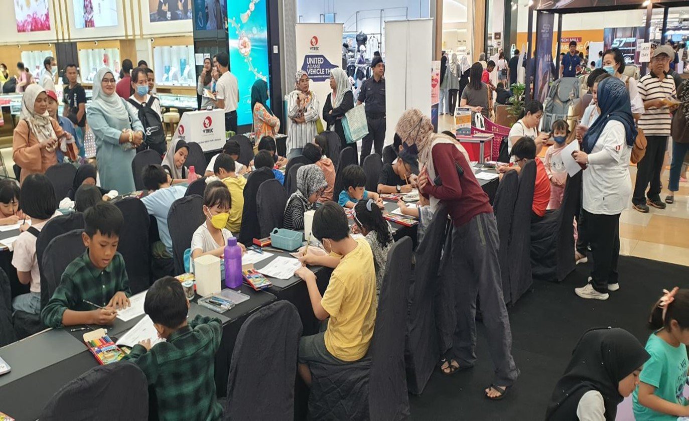 Several activities were arranged, to encourage people to take action, participate, support and pledge including an engagement wall, wheel of fortune, steering lock competition, quizzes, doodle wall, wheel of fortunes and as the mini-campaigns climax, a primary school colouring contest. This colouring contest has received applications from up to 30 children between the ages of 5 years old and 12 years old. The colouring competition took place from 1.00 pm to 3.00 pm at the same venue. Each participant had the opportunity to express their creativity on the provided drawing paper. The most important outcome is to make sure the contestants are able to raise awareness to take care of our vehicle in the early stages.