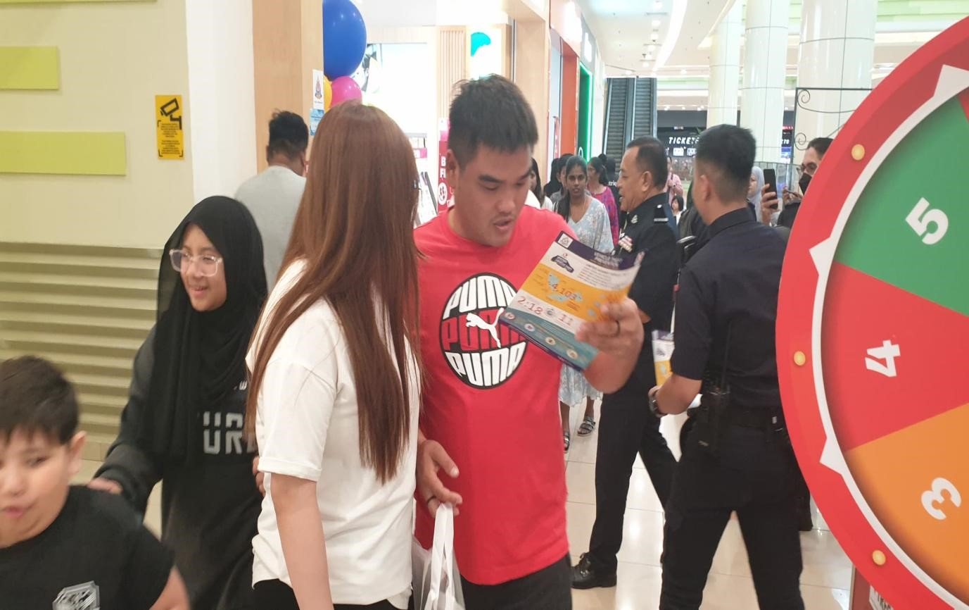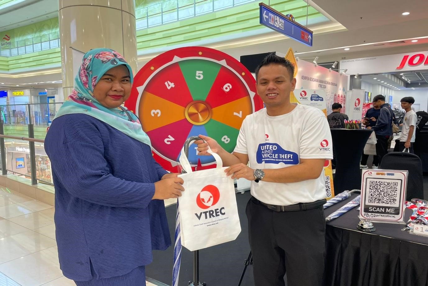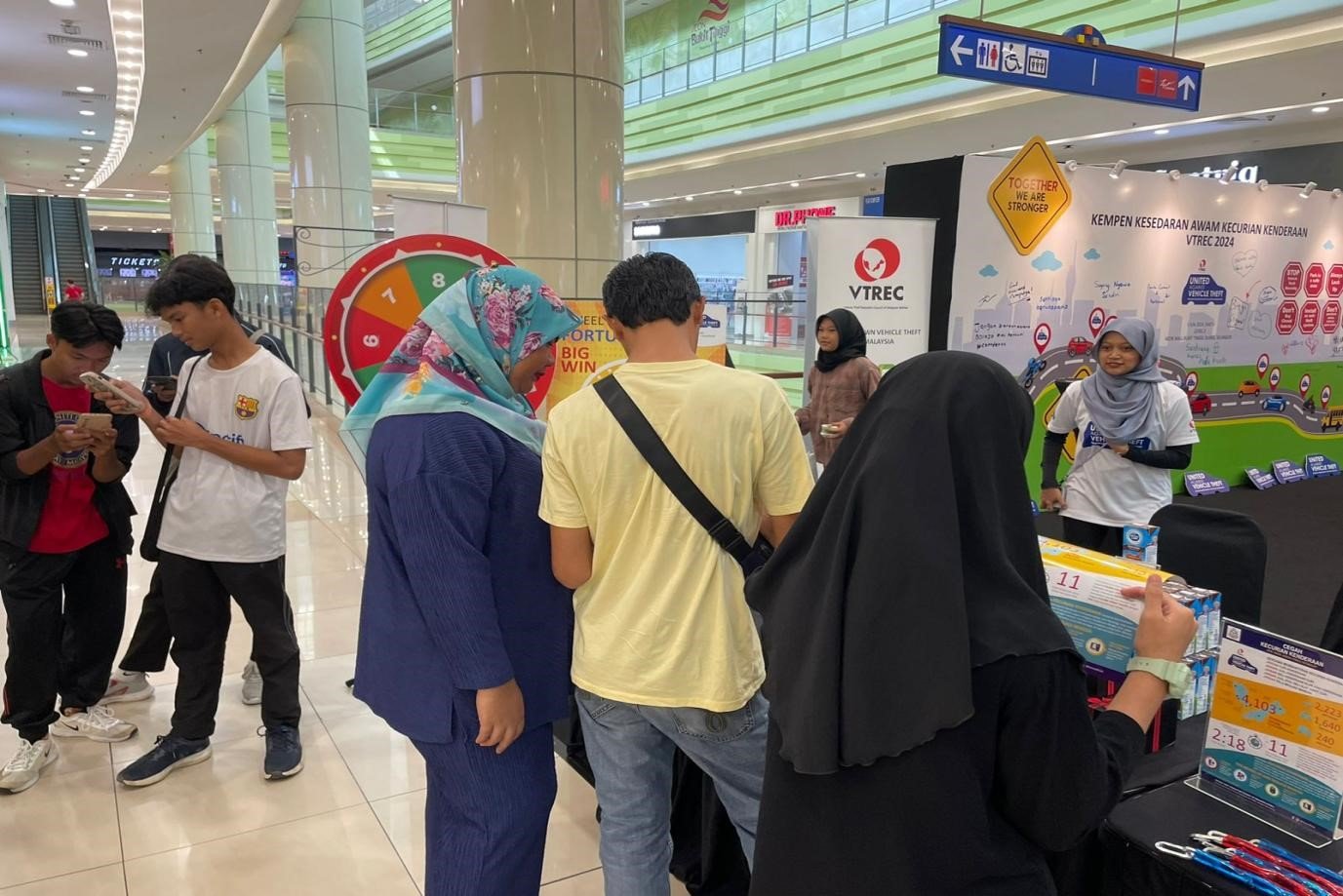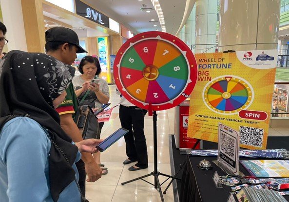 Visitors trying out ‘Wheel of Fortune’ to take home mystery gifts prepared by VTREC during the mini-campaign of ‘Kempen Kesedaran Awam Kecurian Kenderaan VTREC 2024’