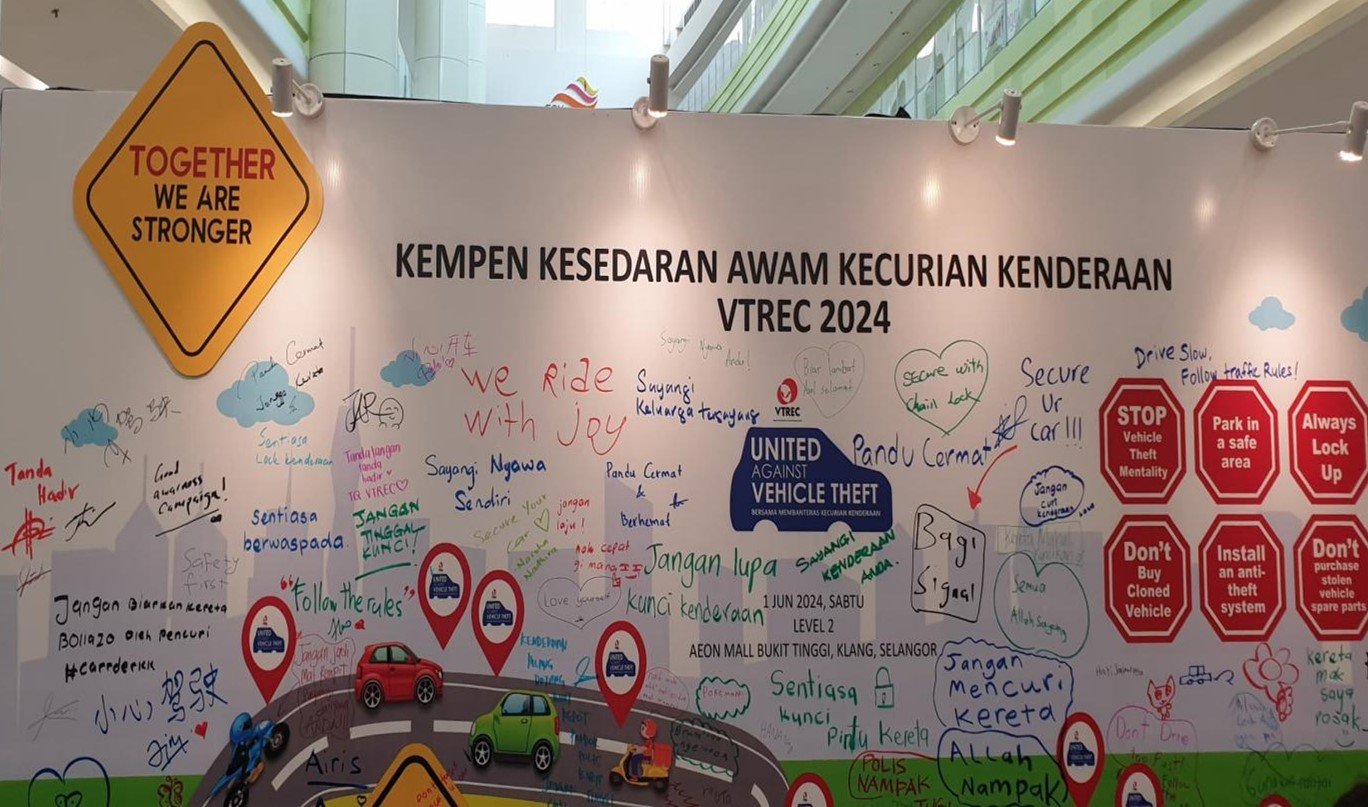 With the theme “United Against Vehicle Theft”, this mini-campaign serves as a crucial platform to advocate for shifts in the behaviour of vehicle owners to keep their vehicles properly and securely. According to YBrs Puan Mas Tina Abdul Hamid, VTREC Co-ordinator “Correspondingly with the theme, it is not the responsibility of one party to prevent vehicle theft. To prevent vehicle theft, we cannot simply depend and put all the blame on authorities. Thus, this campaign is to encourage the community to have behaviour change and to take proper action to ensure the safety of their vehicles and others while preventing vehicle theft in their community.”