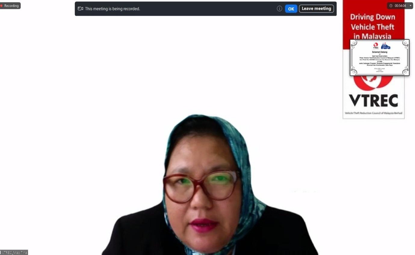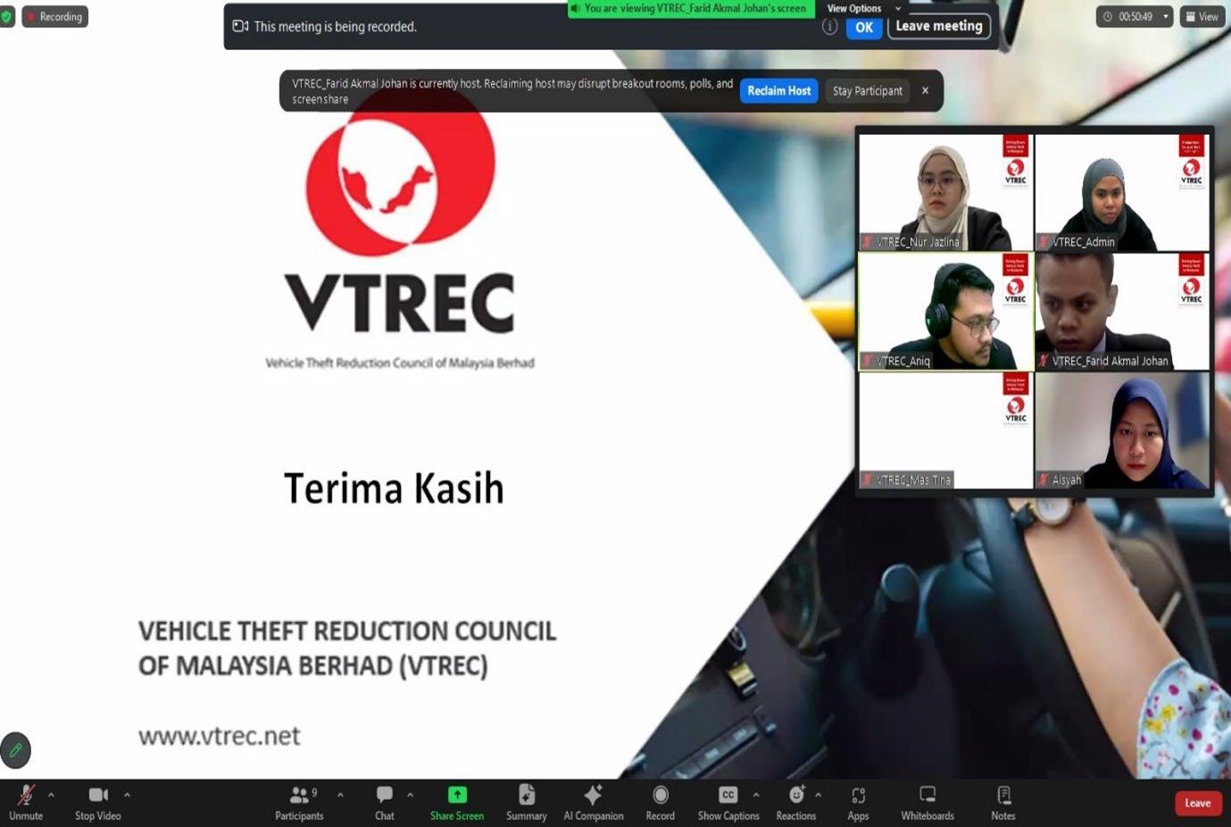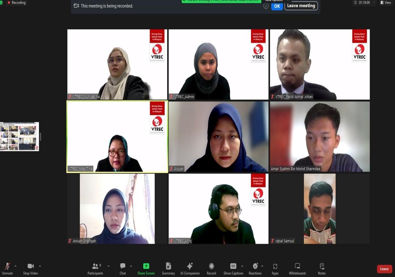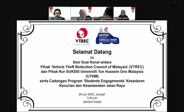 Kuala Lumpur, 28 June 2024: The Vehicle Theft Reduction Council of Malaysia (VTREC) headed by YBhg Puan Mas Tina Abdul Hamid, Co-ordinator of VTREC organised a meeting with Kor SUKSIS (Sukarelawan Polis Siswa Siswi) students of Universiti Tun Hussein Malaysia (UTHM) to discuss potential student engagement in respect to vehicle theft and road accident awareness initiatives.