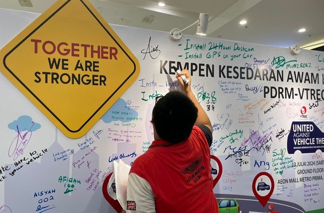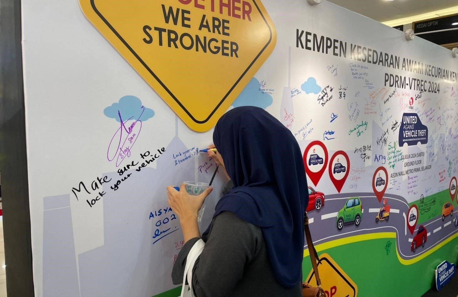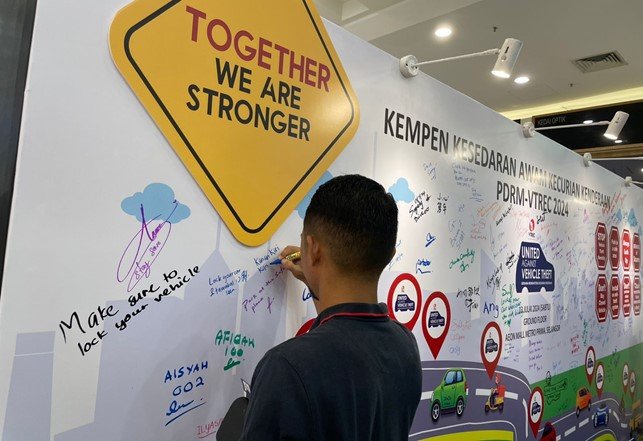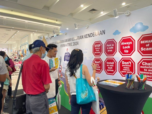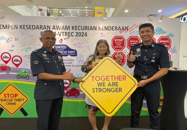 According to VTREC’s Co-ordinator Puan Mas Tina Abdul Hamid, in 2023, 12 automobiles were stolen on average every day. “Improving people’s safety requires teaching them how to protect their cars from theft and identifying dangerous parking spots.” Presented as a significant endeavour, the PDRM-VTREC Vehicle Theft Public Awareness Mini Campaign raises public awareness of the issue and provides a vital platform for enabling people to take action to alter attitudes and behaviours related to vehicle theft.